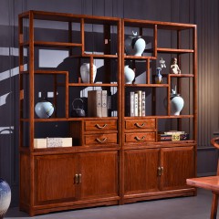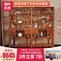木耘 红木家具非洲花梨(学名:刺猬紫檀)三组合博古架实木书柜