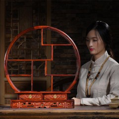 贡匠 红酸枝客厅圆形小博古架实木中式桌面仿古多宝阁置物架红酸