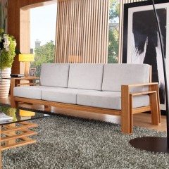 品生美实木沙发客厅小户型沙发单人三人位北欧沙发组合竹制日式