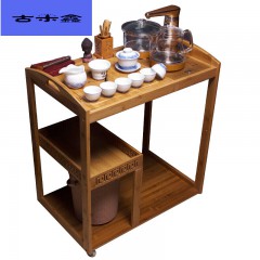 可移动实木茶桌装饰沙发边角几带轮竹制实木新品自动木雕茶车一体