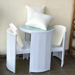 茂利达 阳台真藤编桌椅组合白色 藤艺休闲藤椅藤条椅子茶几三件