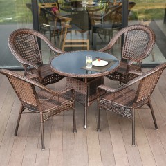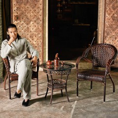 野人谷户外桌椅组合藤编阳台室外庭院休闲家具铁艺座椅户外藤椅