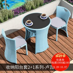 紫叶 (ziye) 阳台桌椅藤椅三件套 阳台小茶几组合户外休闲简约