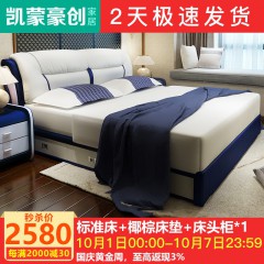 凯蒙豪创 真皮 双人床 主卧 皮床 668 1.8*2.0米床+椰棕床垫+1柜
