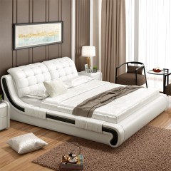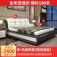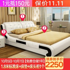 中派 床卧室双人真皮床 1.8*2.0标准床+床垫+床头柜1个