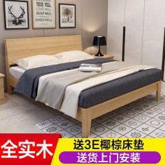 蓓影 北欧实木床松木床单人床木床双人床卧室大床原木无漆床送3
