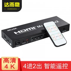 达而稳(DOREWIN)HDMI切换器4进2出高清分配器四进二出4k*2k矩