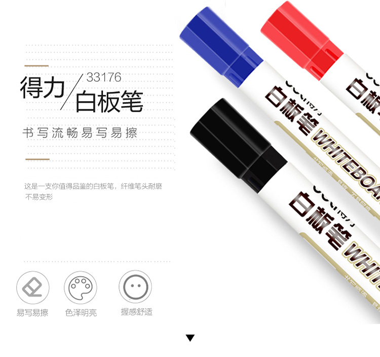 商品名称:得力(deli)办公会议可擦易擦白板笔 10支组合装(7黑+2蓝+1红)33176