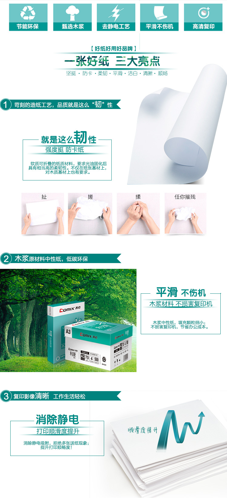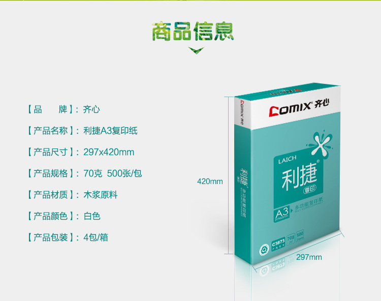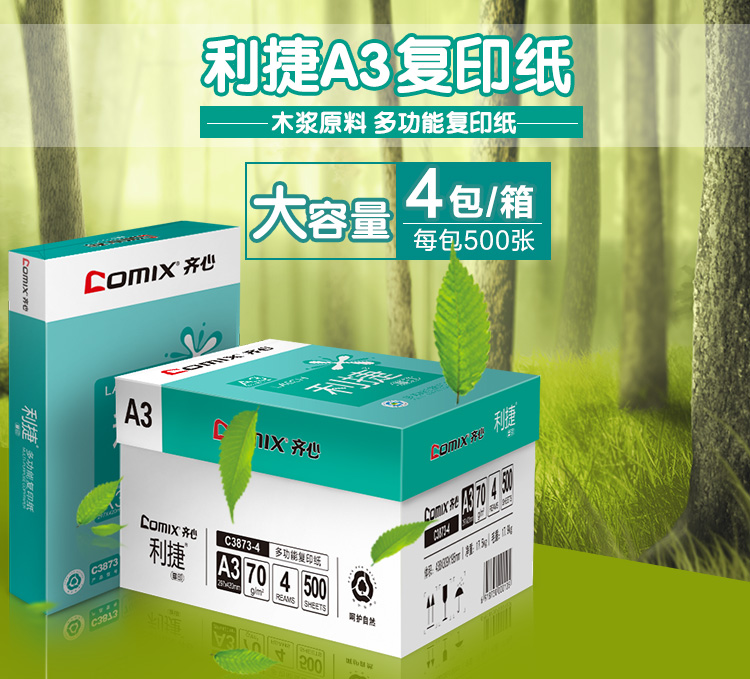 商品名称:齐心(COMIX)C3873-4 利捷70克A3复印纸(4包/箱)