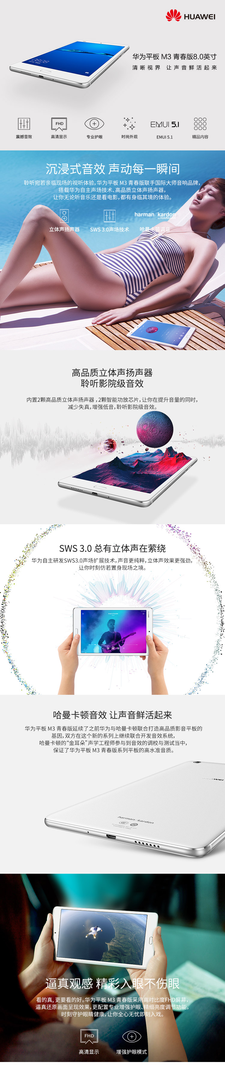 华为(HUAWEI)M3 8.0英寸 平板电脑(不包邮) 日辉金