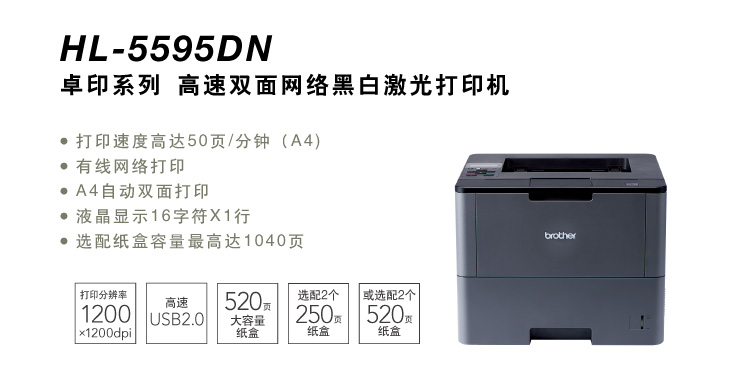 商品名称:兄弟(brother)HL-5595DN 高速黑白激光打印机 自动双面打印 有线网络