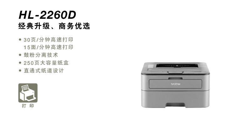 兄弟(brother)HL-2260D 黑白激光打印机 (双面打印)