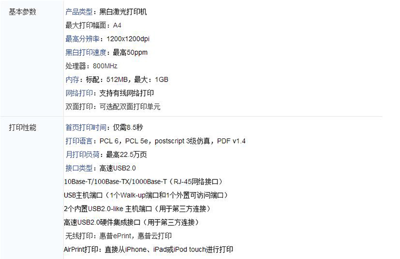 商品名称:HP/惠普 LaserJet Enterprise 600 M602n黑白激光打印机