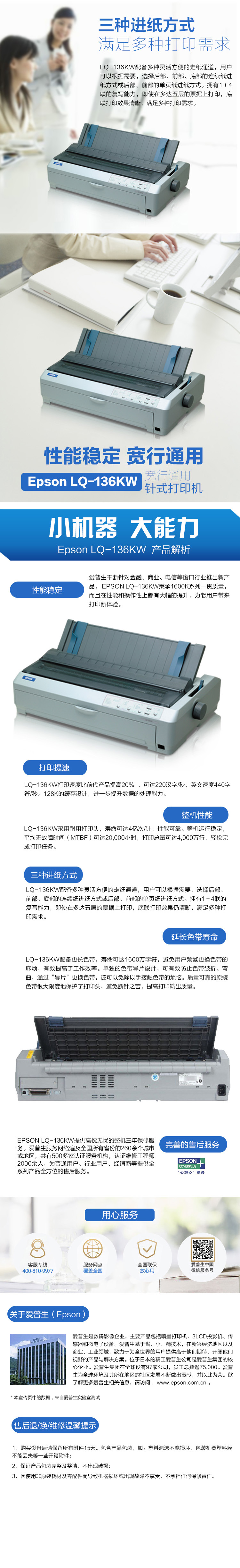 商品名称:爱普生(EPSON)LQ-136KW 宽行通用针式打印机