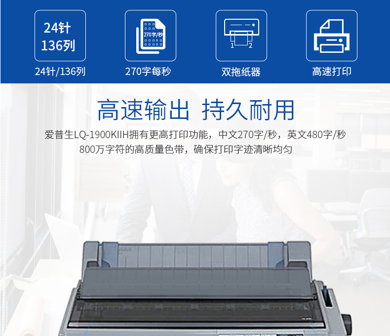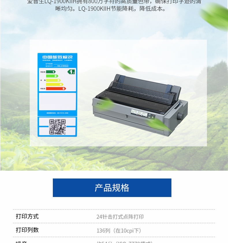 商品名称:爱普生(EPSON) LQ-1900KIIH 1900K2H针式打印机 (136列卷筒式)