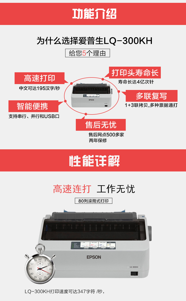 商品名称:爱普生(EPSON) LQ-300KH 滚筒打印机80列