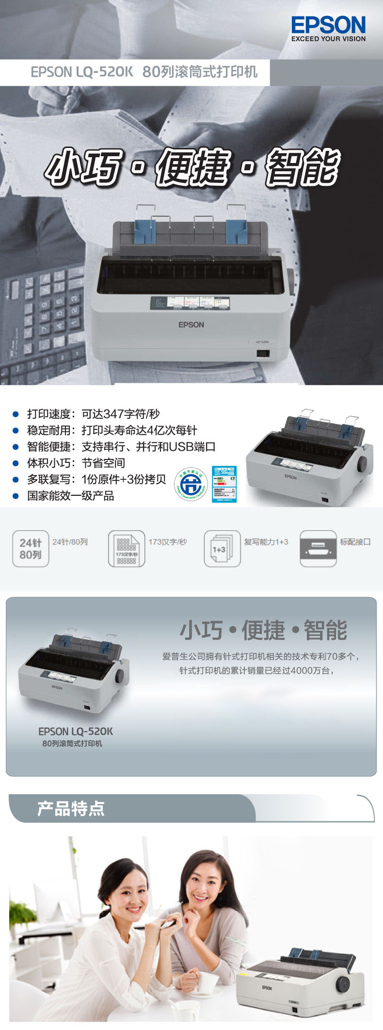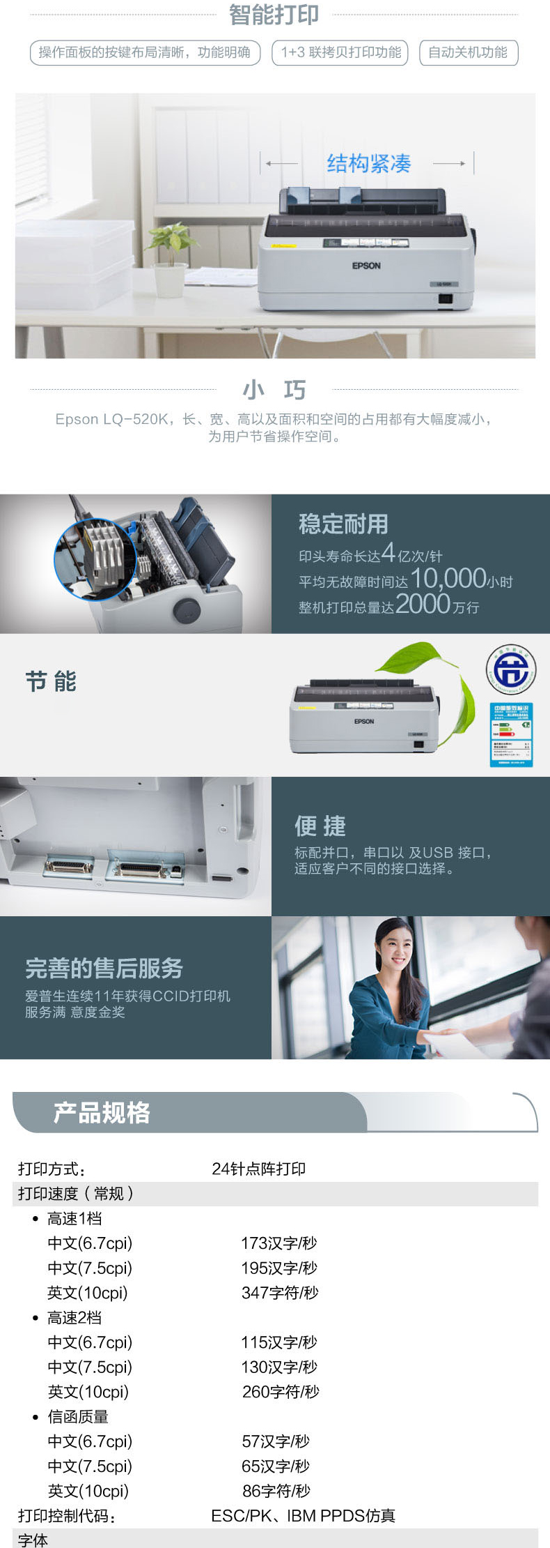 商品名称:爱普生(EPSON) LQ-520K 滚筒针式打印机