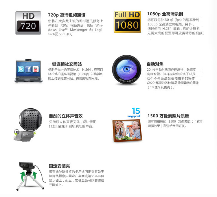 商品名称:罗技(Logitech)C920e 高清网络直播摄像头