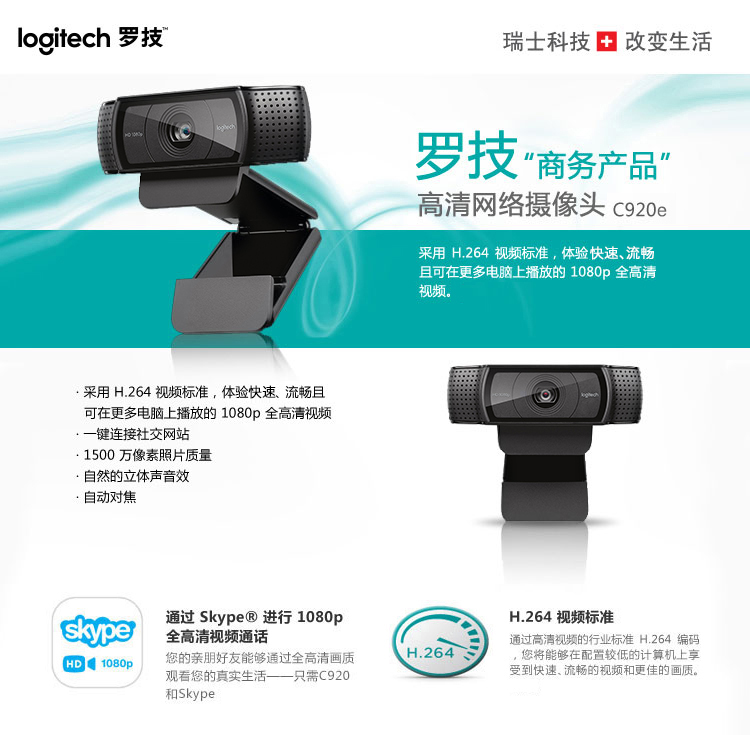 罗技(Logitech)C920e 高清网络直播摄像头