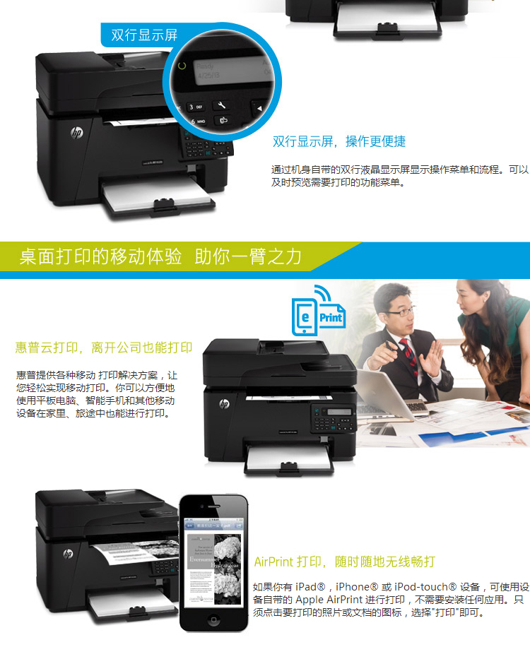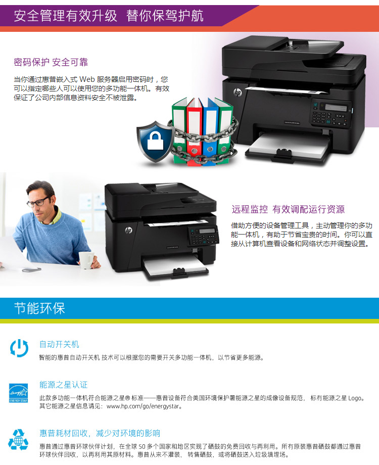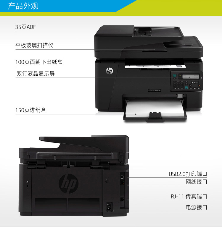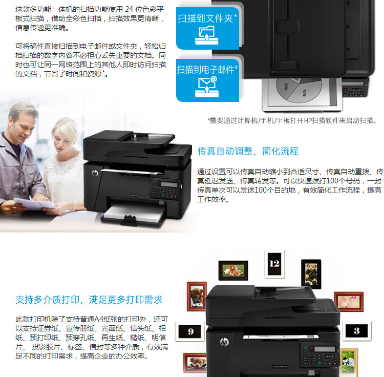 惠普(HP)LaserJet Pro MFP M128fn黑白激光多功能一体机 打印复印扫描传真