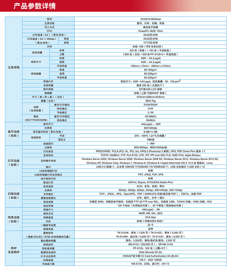 商品名称:京瓷(kyocera) M6530cdn彩色激光多功能一体机
