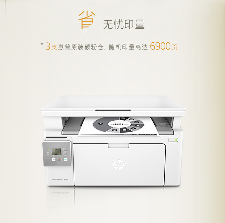 商品名称:惠普(HP) LaserJet Ultra MFP M134a激光多功能一体机
