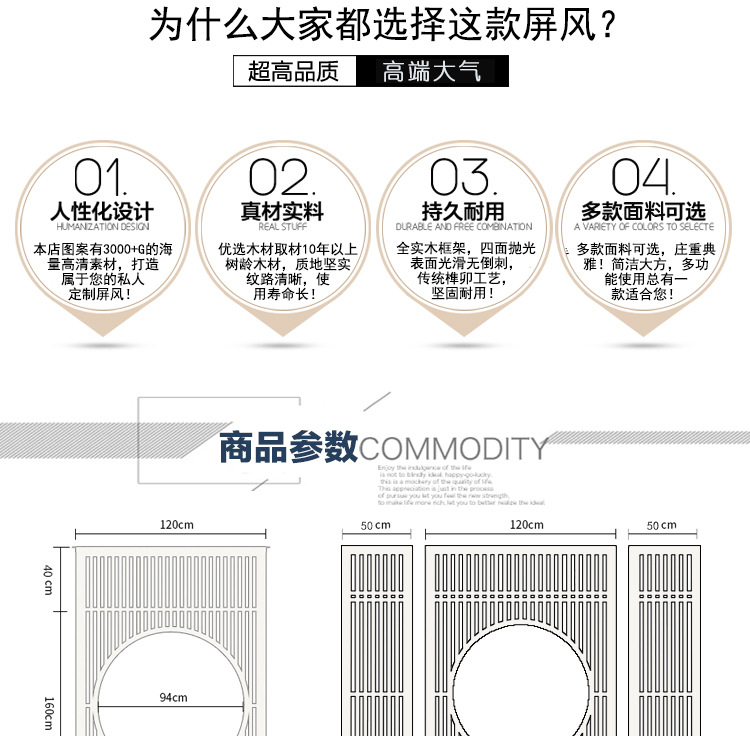 商品名称:简约现代客厅屏风隔断座屏屏风现代风格新中式玄关实木简约隔断