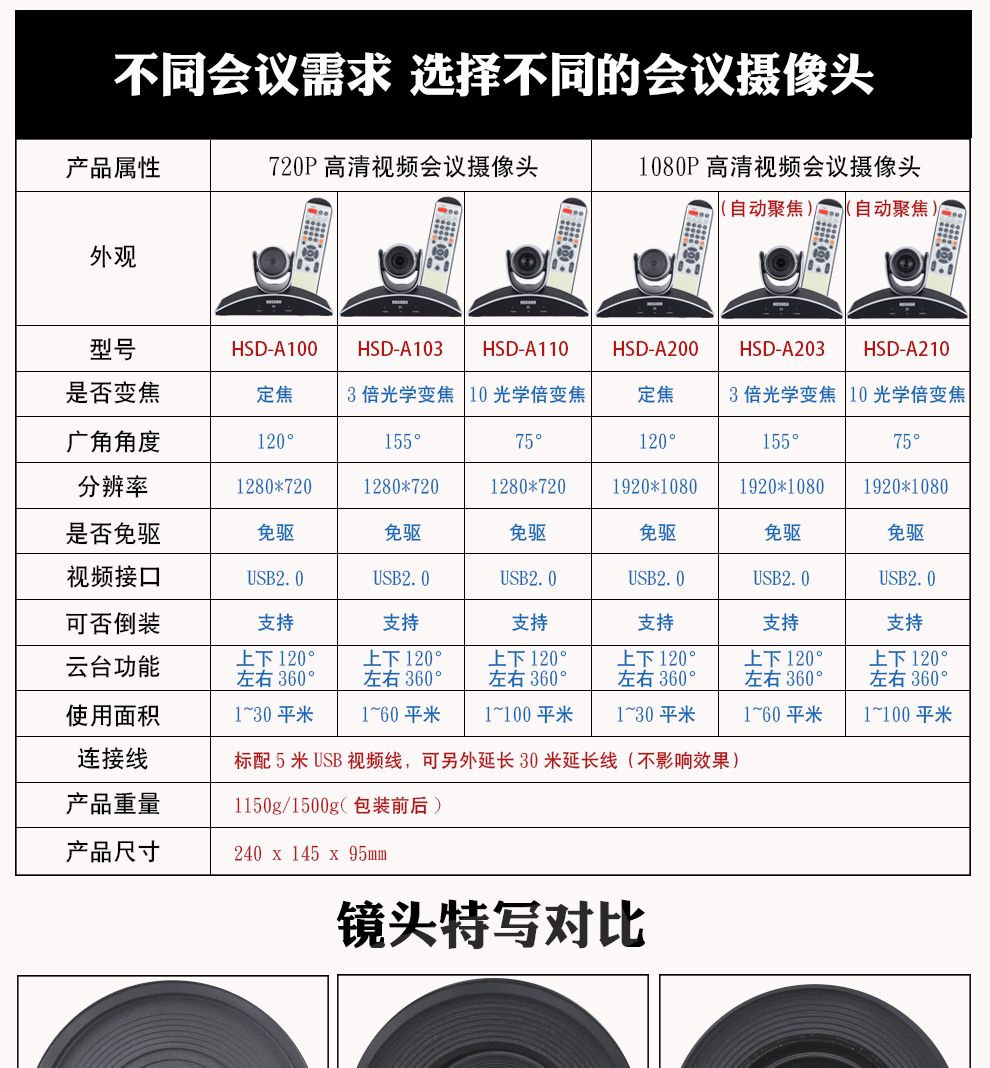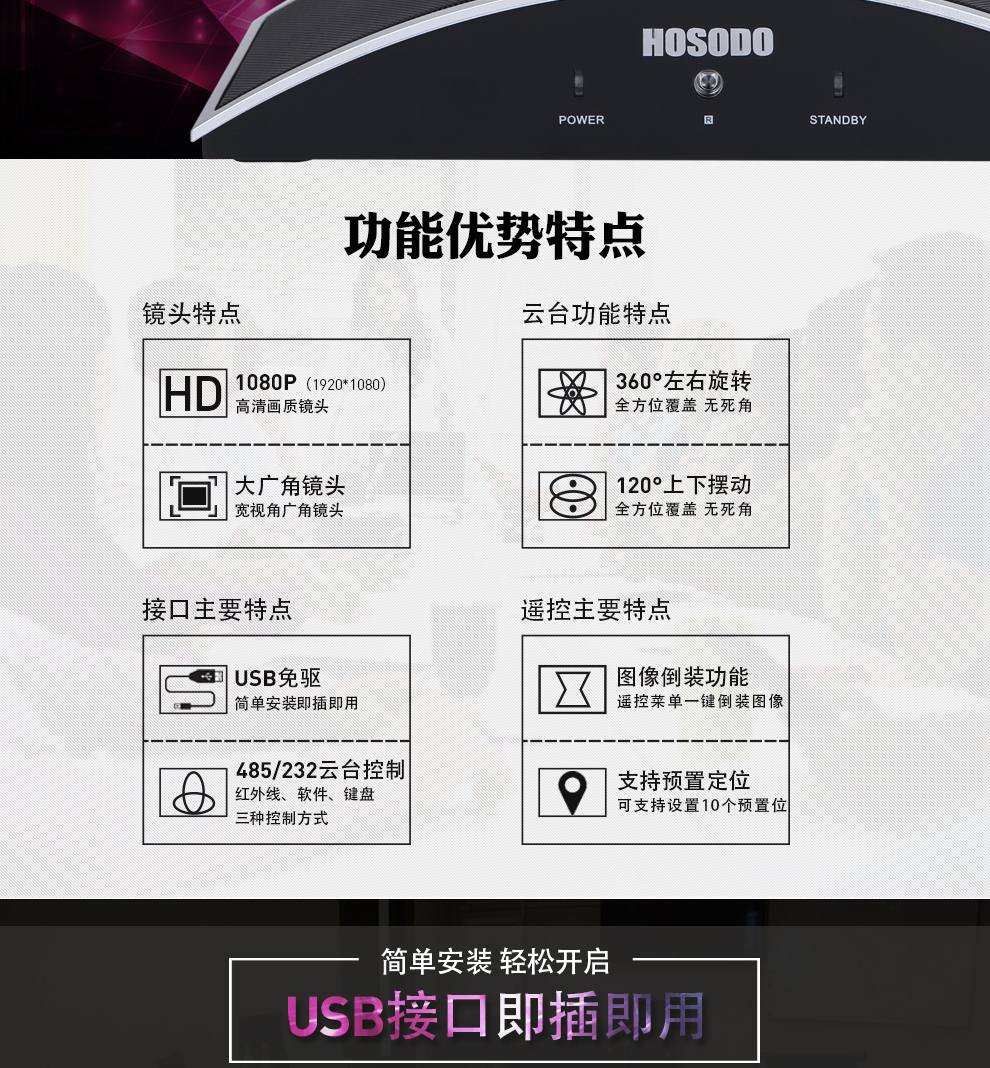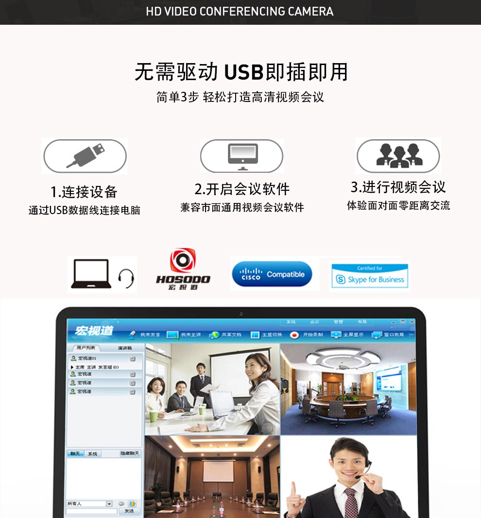 宏视道(HOSODO)USB视频会议摄像头/高清会议摄像机设备/软件视