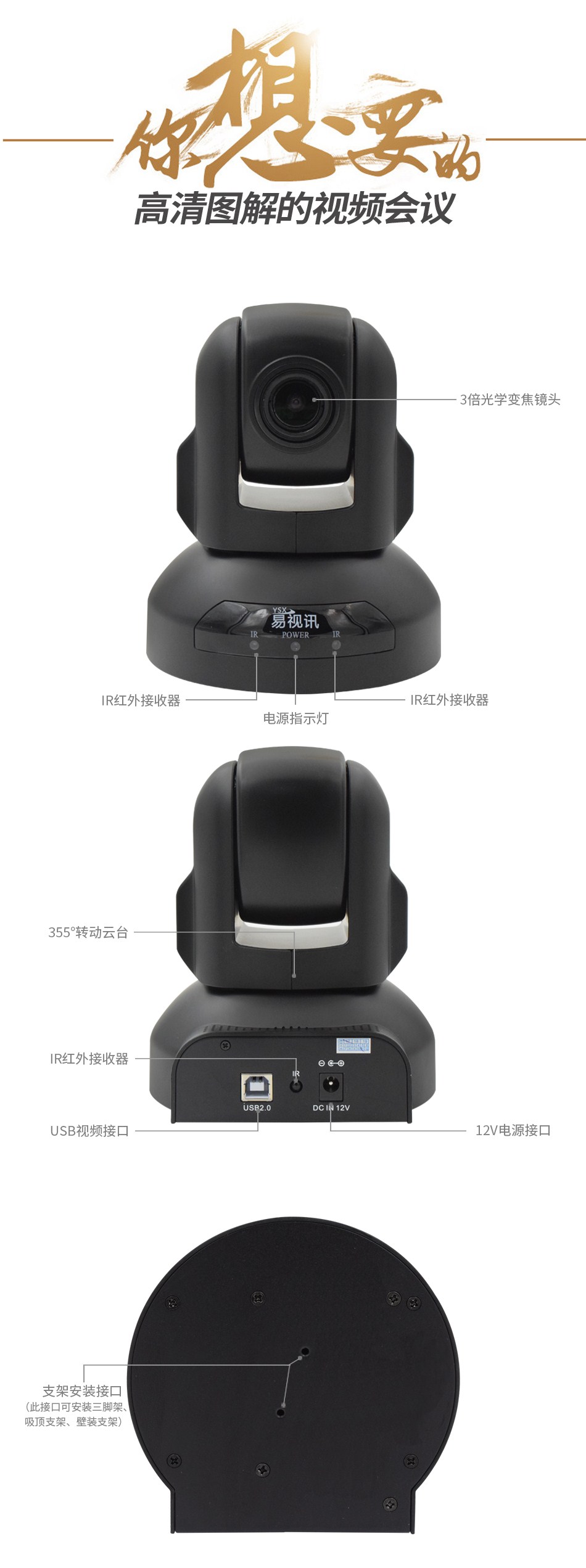 商品名称:易视讯(YSX) USB视频会议摄像头/高清会议摄像机/系统设备(3倍