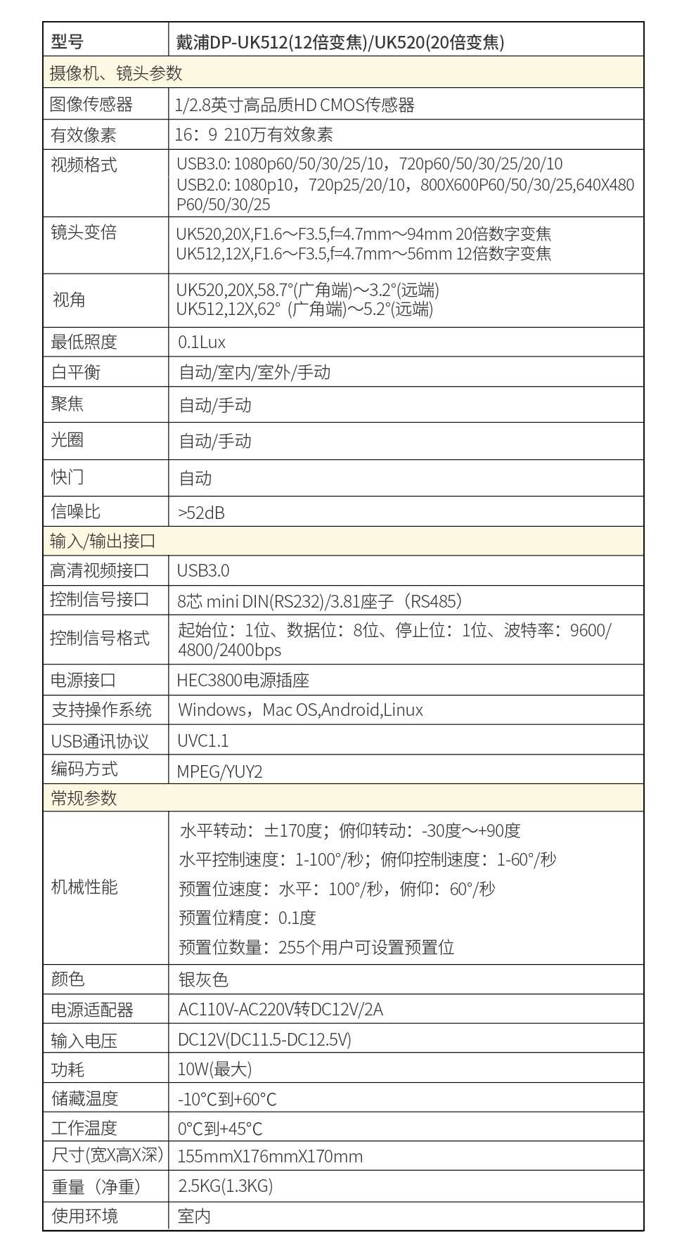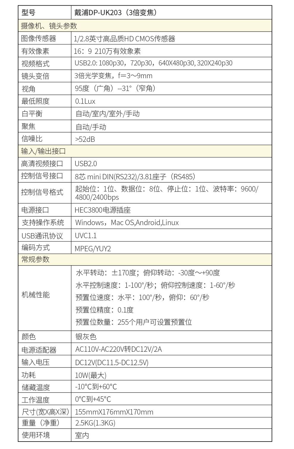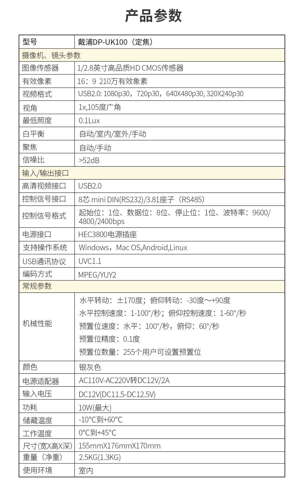 商品名称:戴浦(DAIPU)高清视频会议摄像头 USB视频会议系统设备摄像机DP