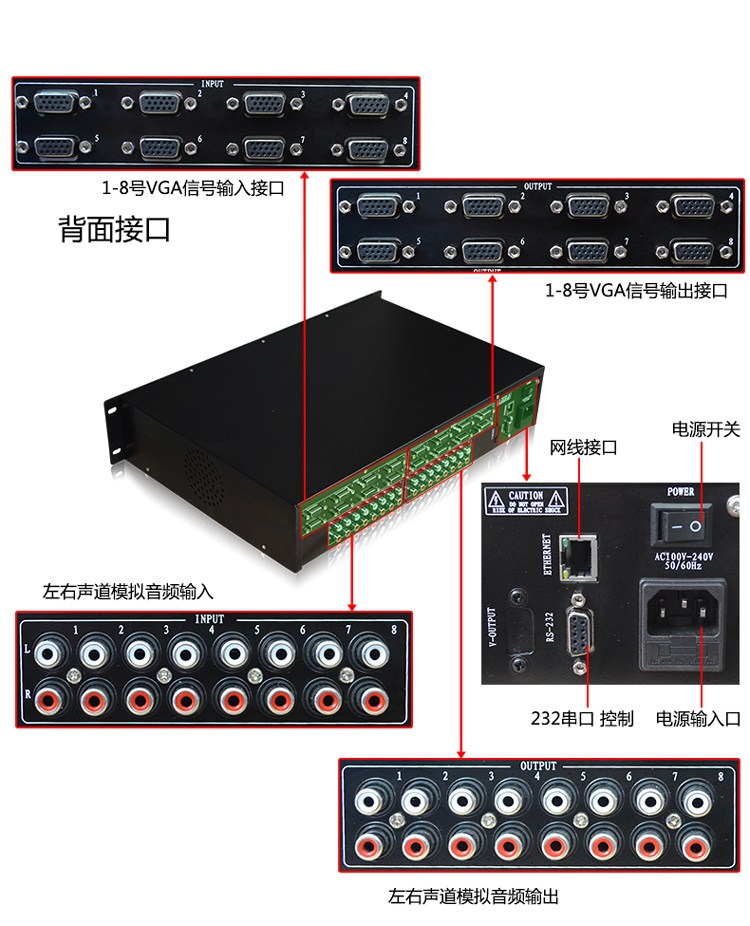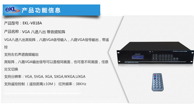 迈拓维矩(MT-viki) 带立体声音频VGA矩阵切换器 8进8出 4进4出