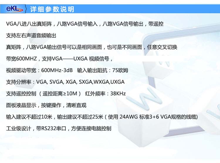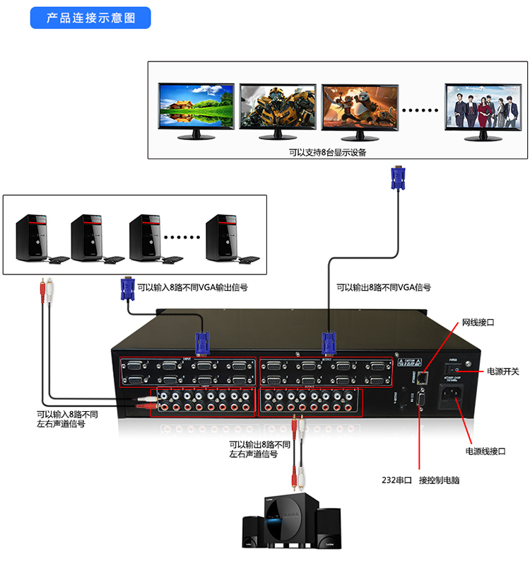 商品名称:迈拓维矩(MT-viki) 带立体声音频VGA矩阵切换器 8进8出 4进4出