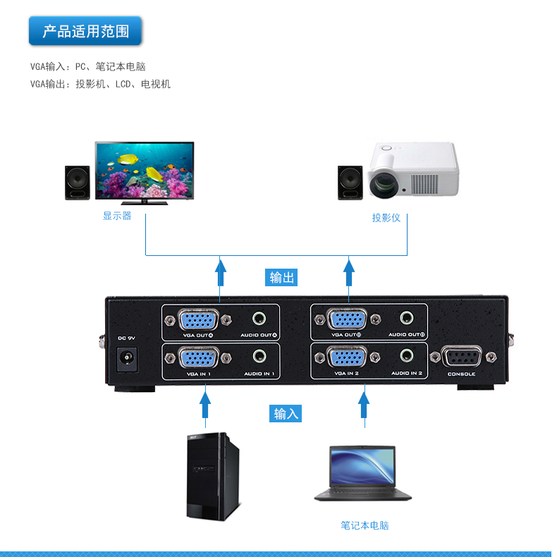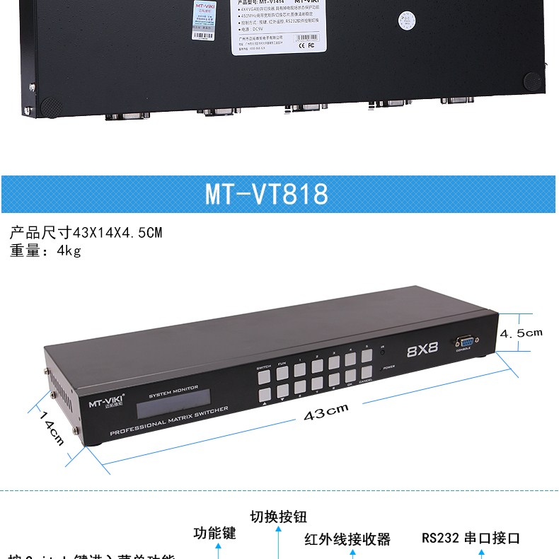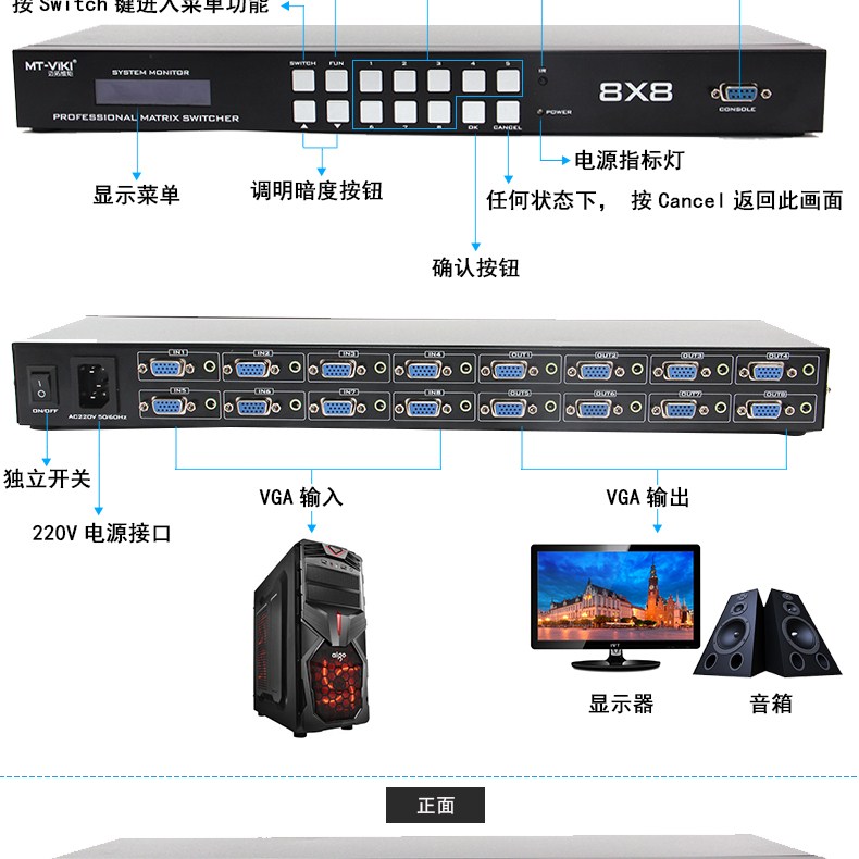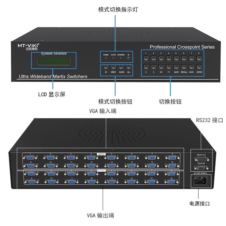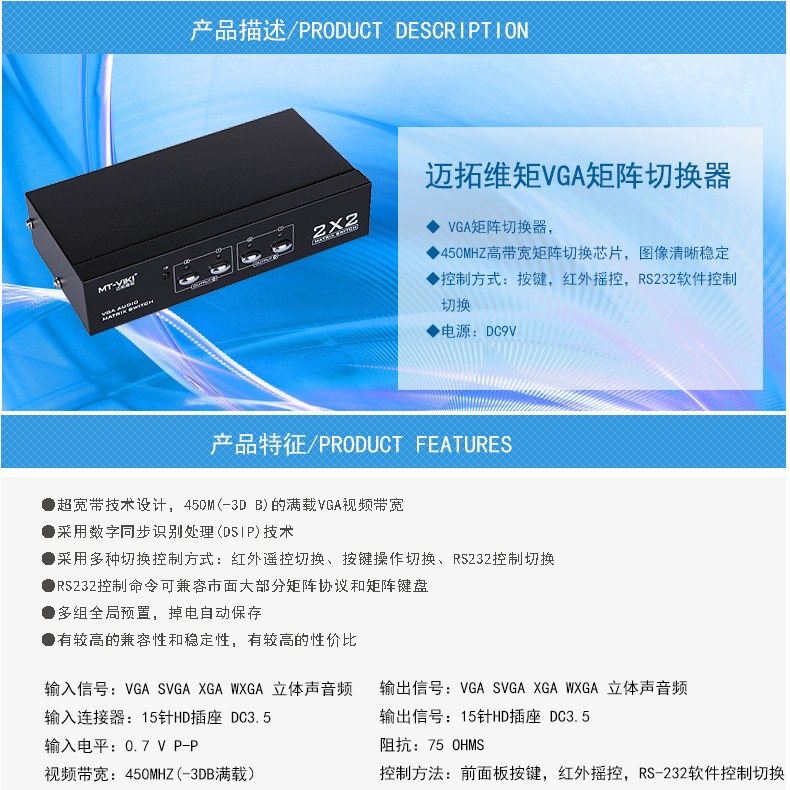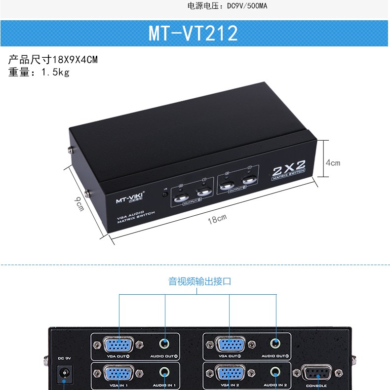 商品名称:迈拓维矩(MT-viki) MT-VT212 VGA矩阵式切换器 两进两出带音频