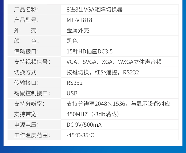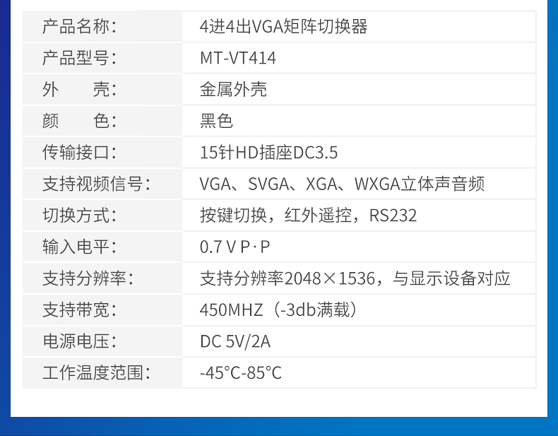 商品名称:ATEN 宏正 VM0404 4进4出 VGA接口矩阵式视频切换器带有音频功能