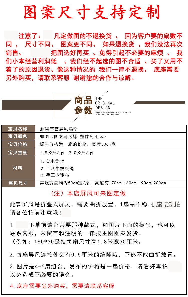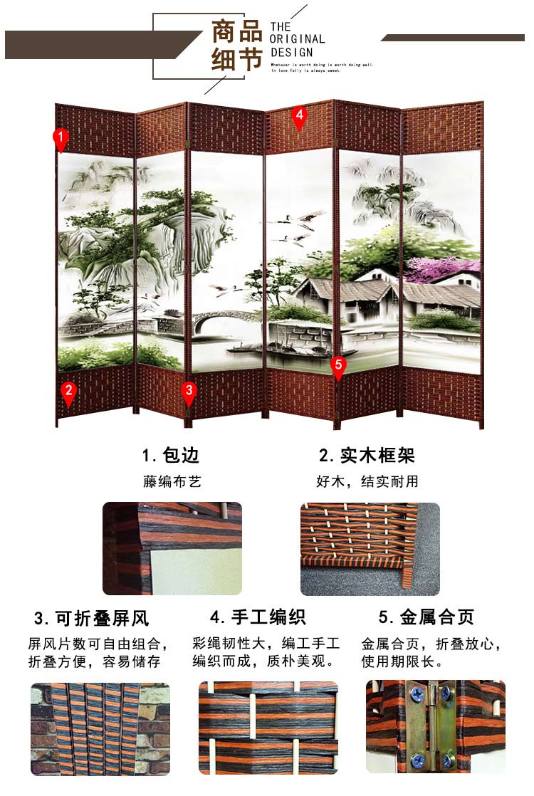 商品名称:欧美人 屏风隔断时尚中式客厅玄关门酒店办公室草编折屏单扇50*1