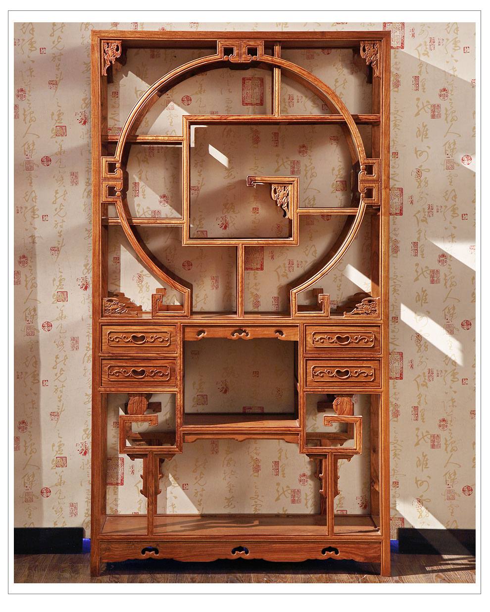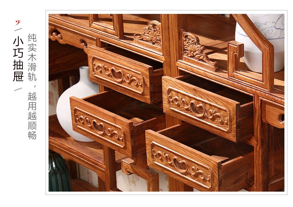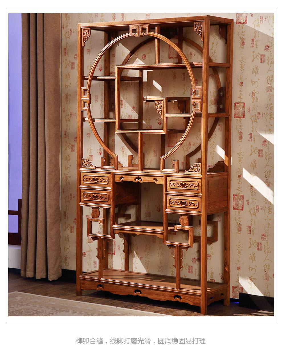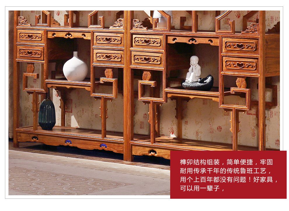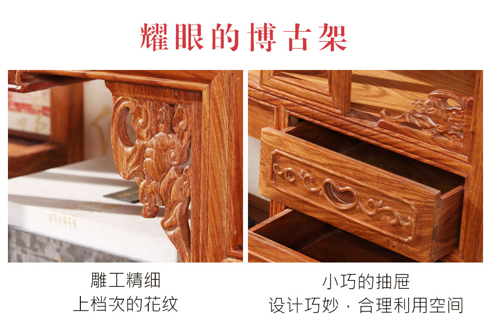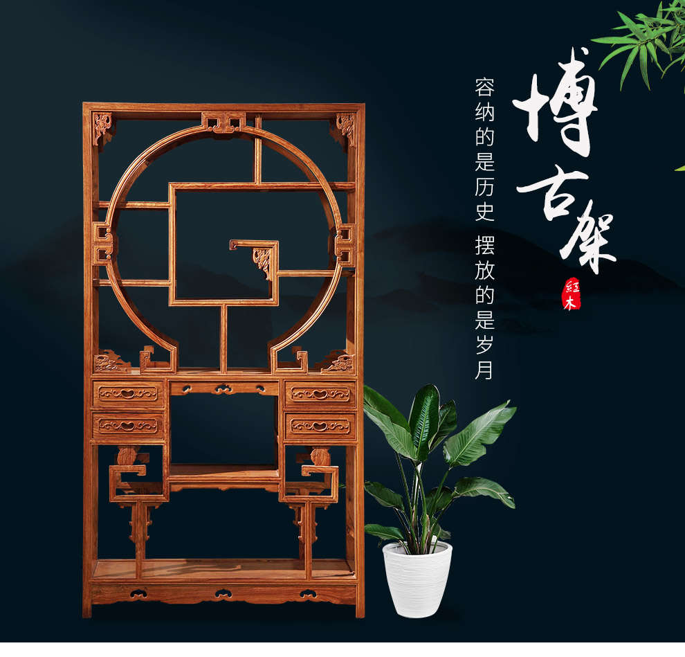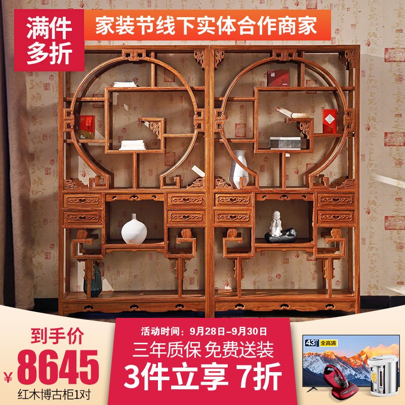 粤顺 红木家具非洲花梨(学名:刺猬紫檀)书柜实木博古架多宝阁