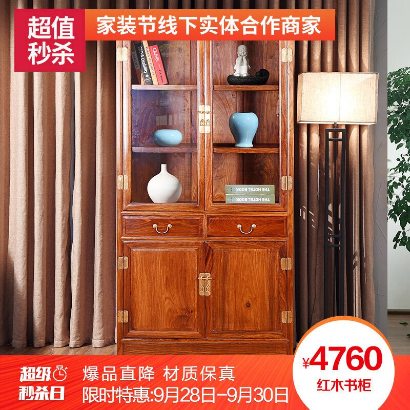 商品名称:粤顺 红木家具非洲花梨(学名:刺猬紫檀)书柜实木书柜玻璃柜博