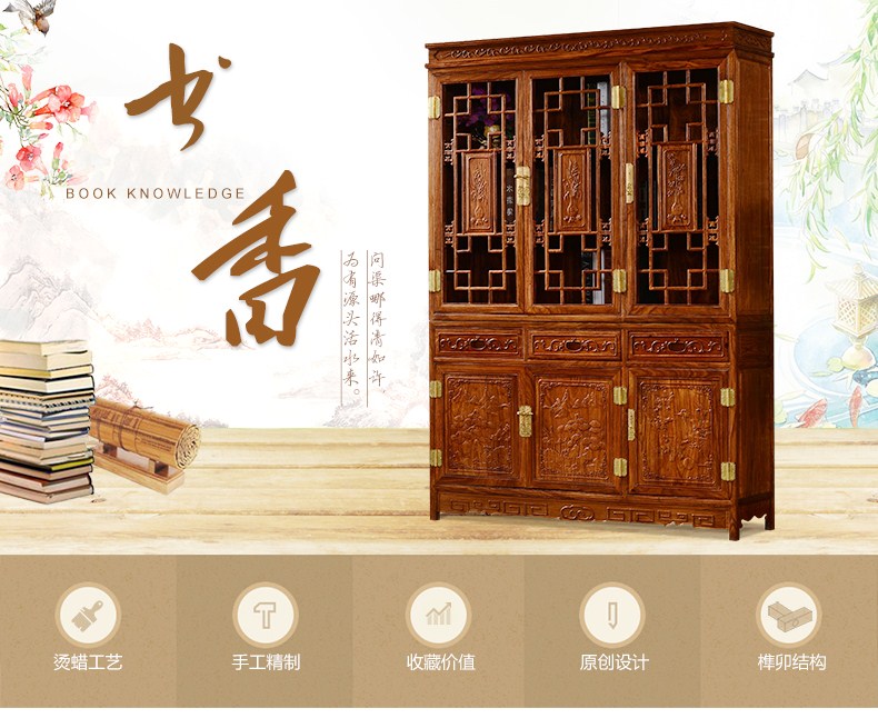 商品名称:古味居 红木家具非洲花梨(学名:刺猬紫檀)古典书房书柜中式书