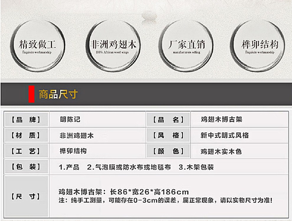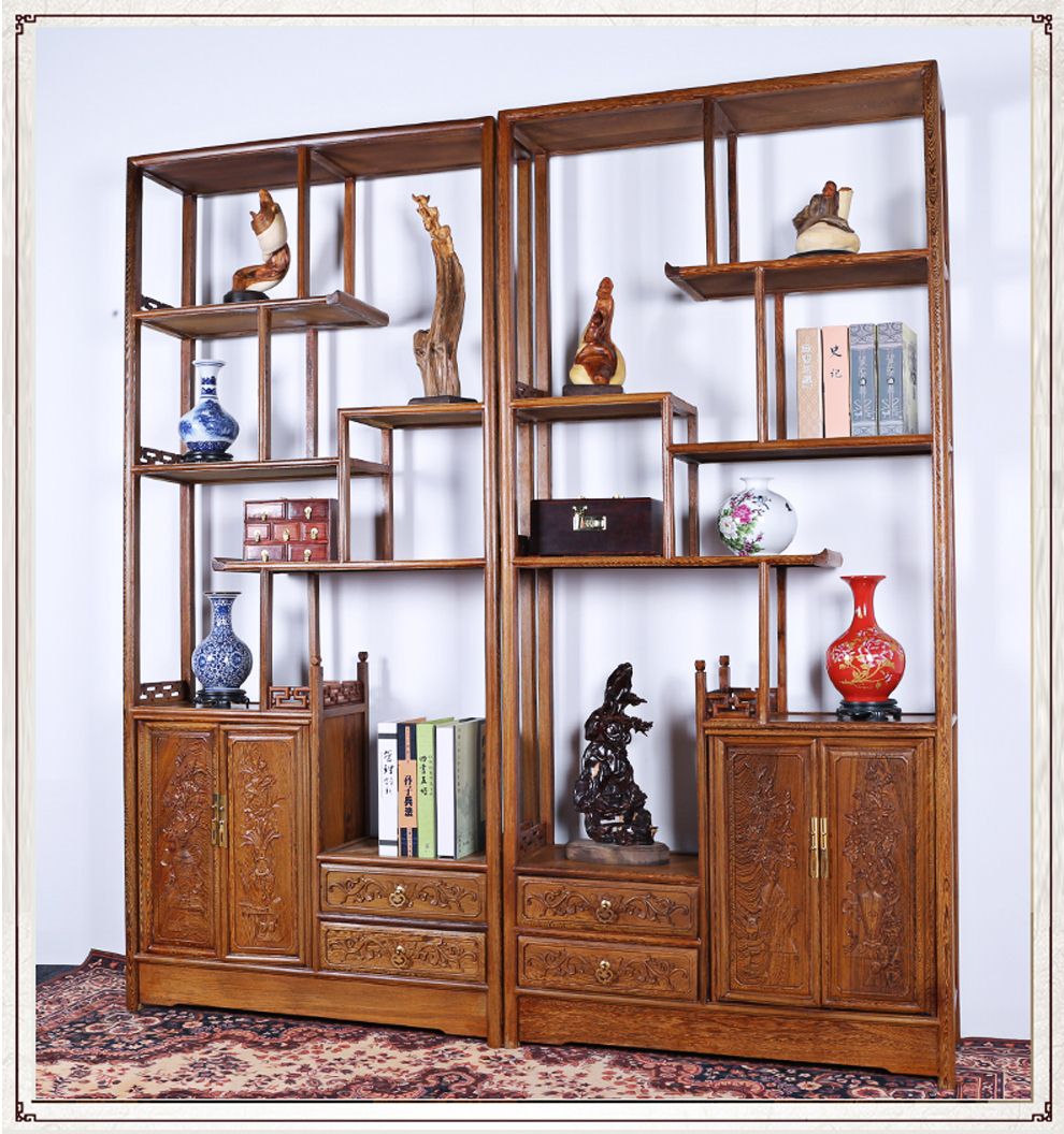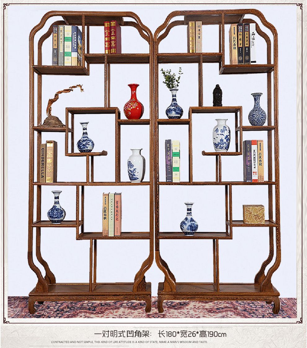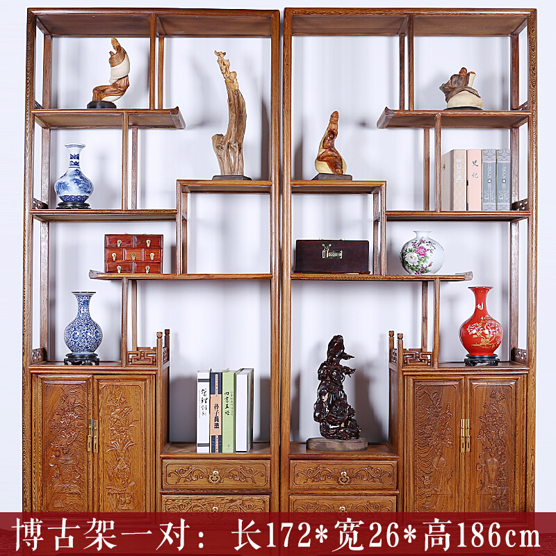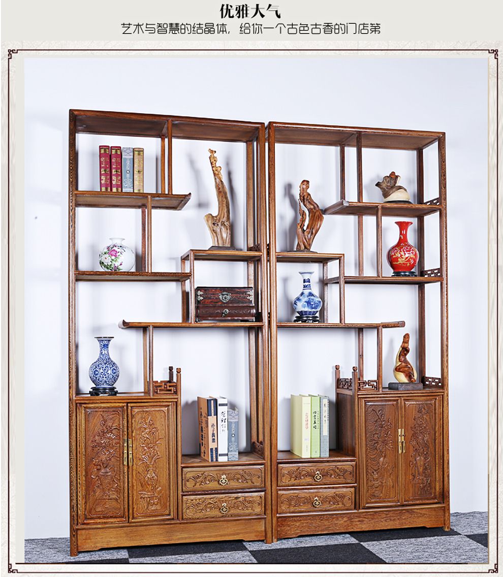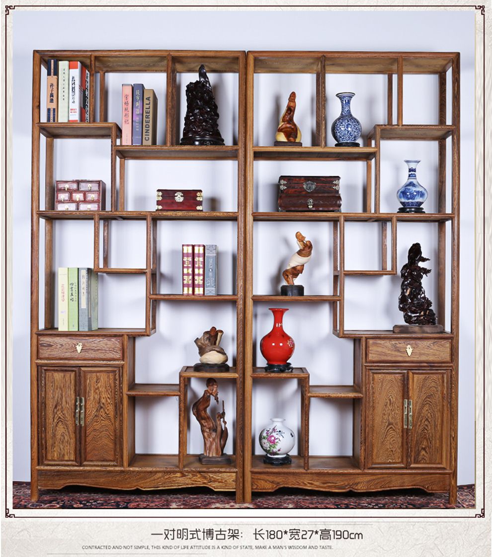 商品名称:明陈记古典家具 全实木书架落地古董展示架仿古摆件置物架博古架