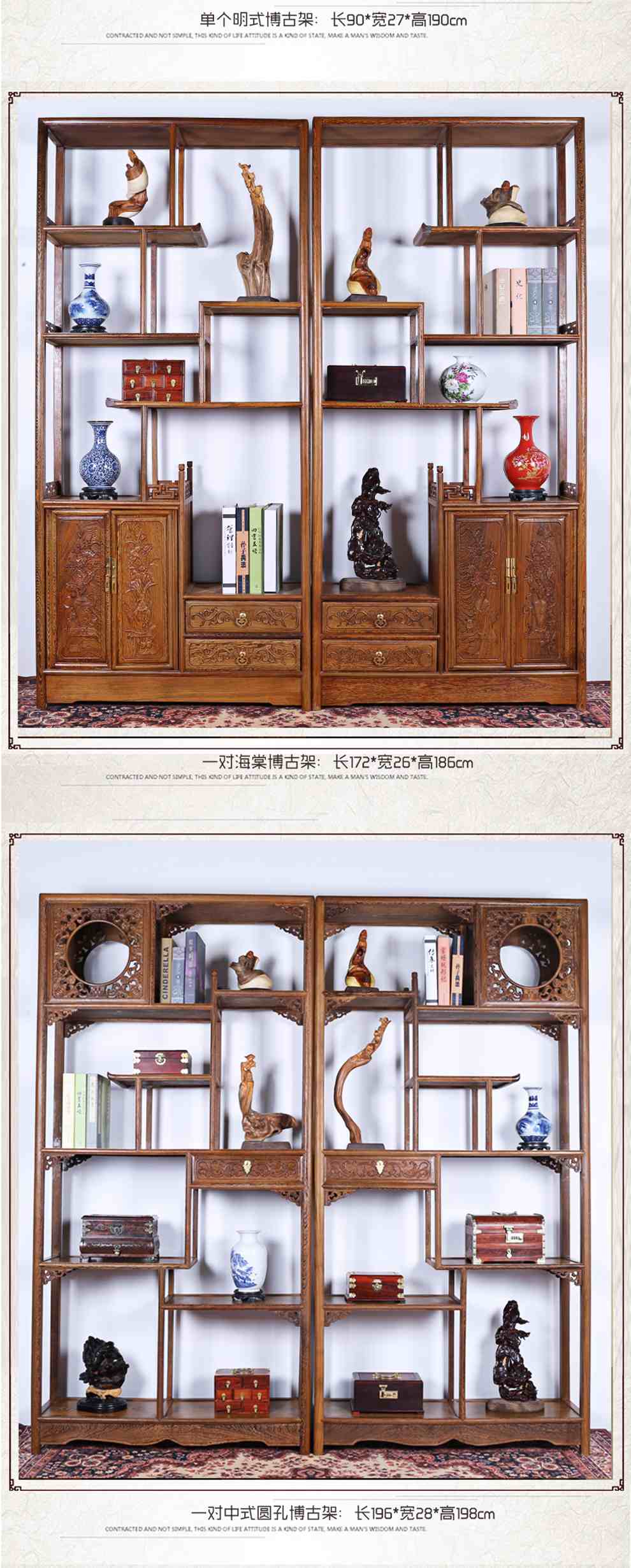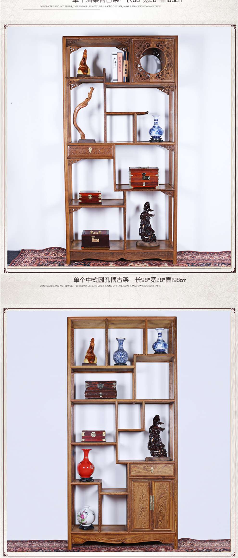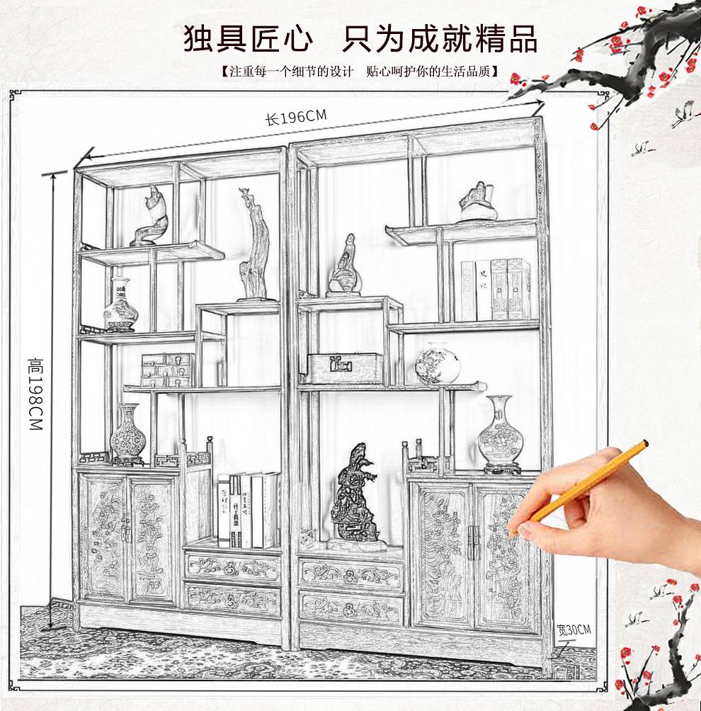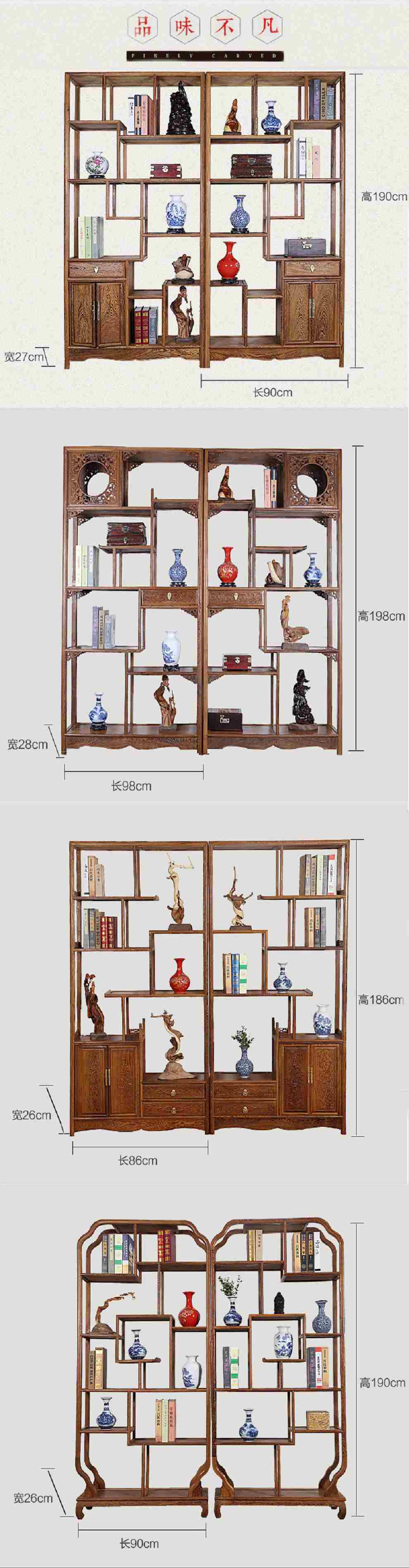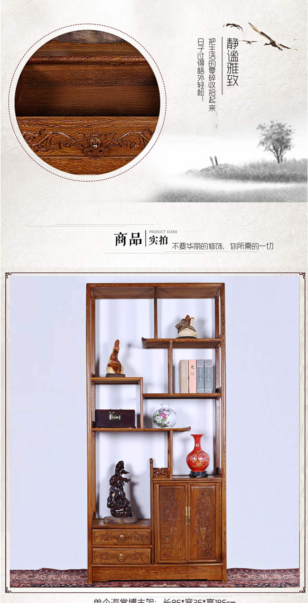 商品名称:明陈记古典家具 全实木书架落地古董展示架仿古摆件置物架博古架