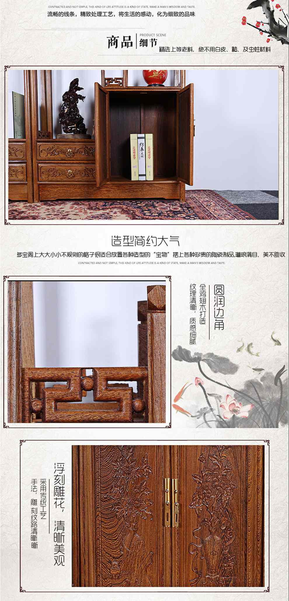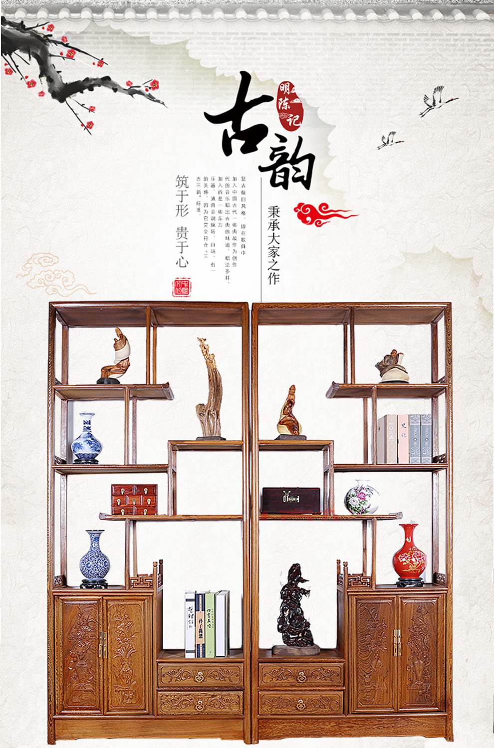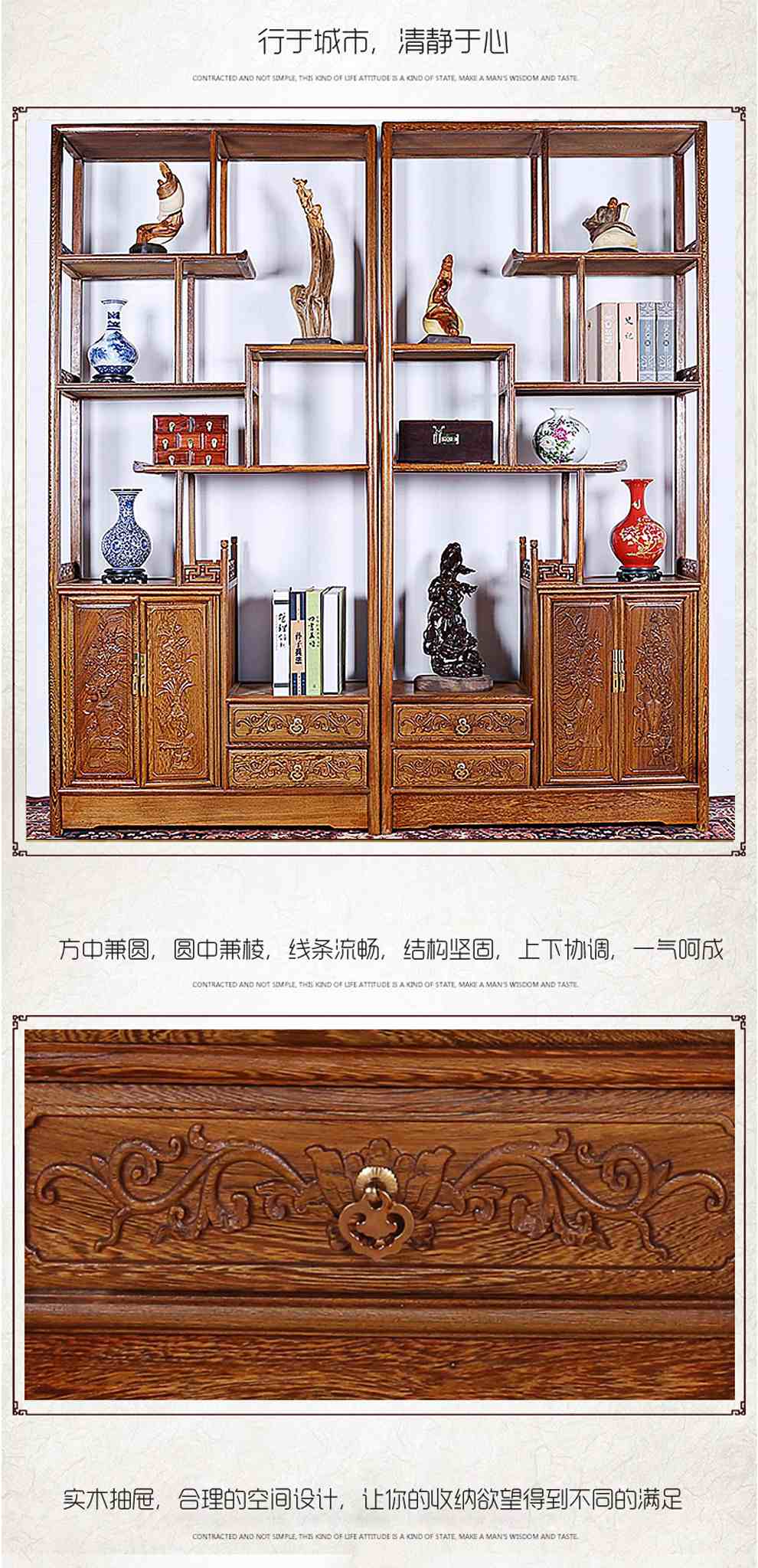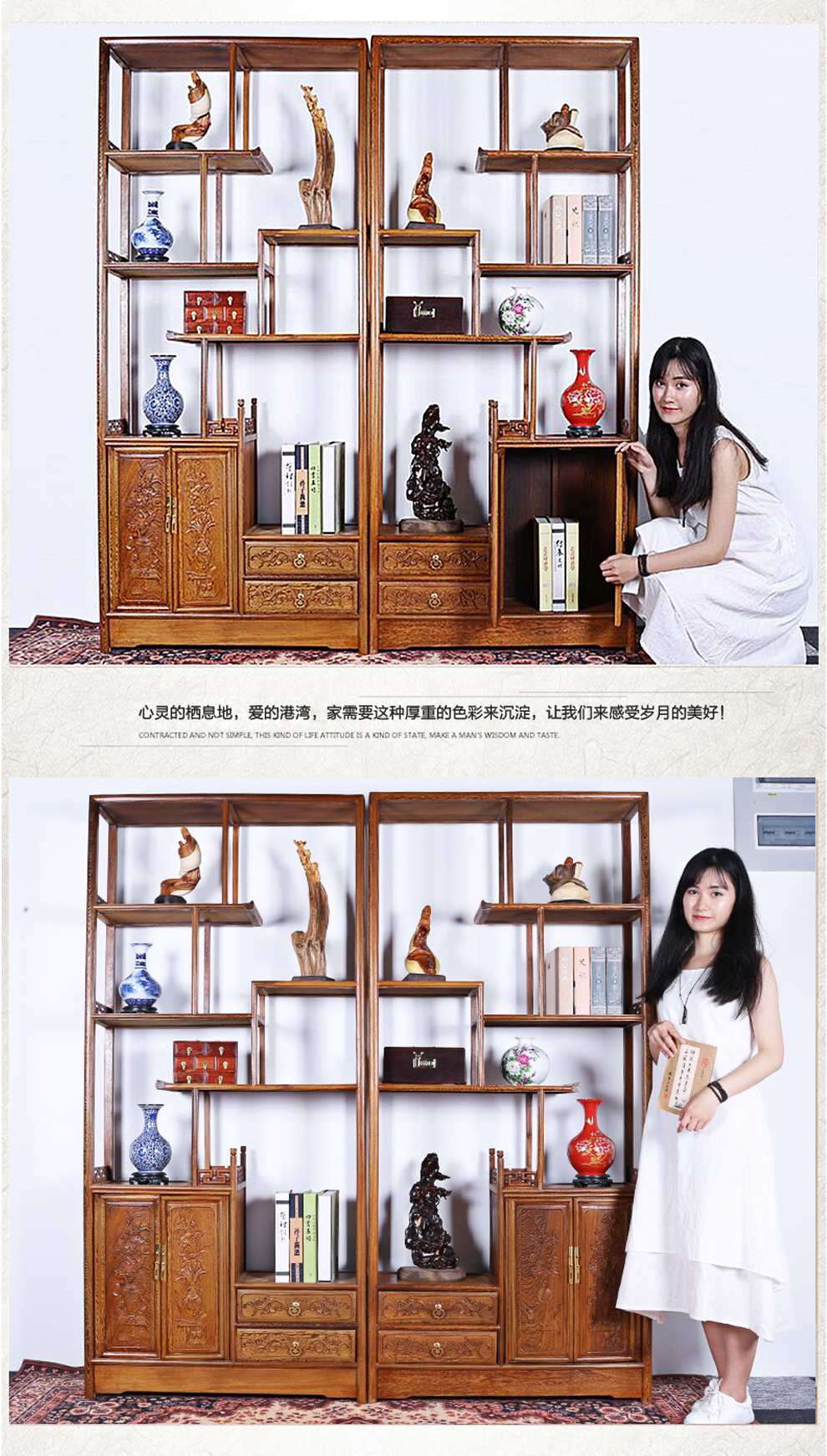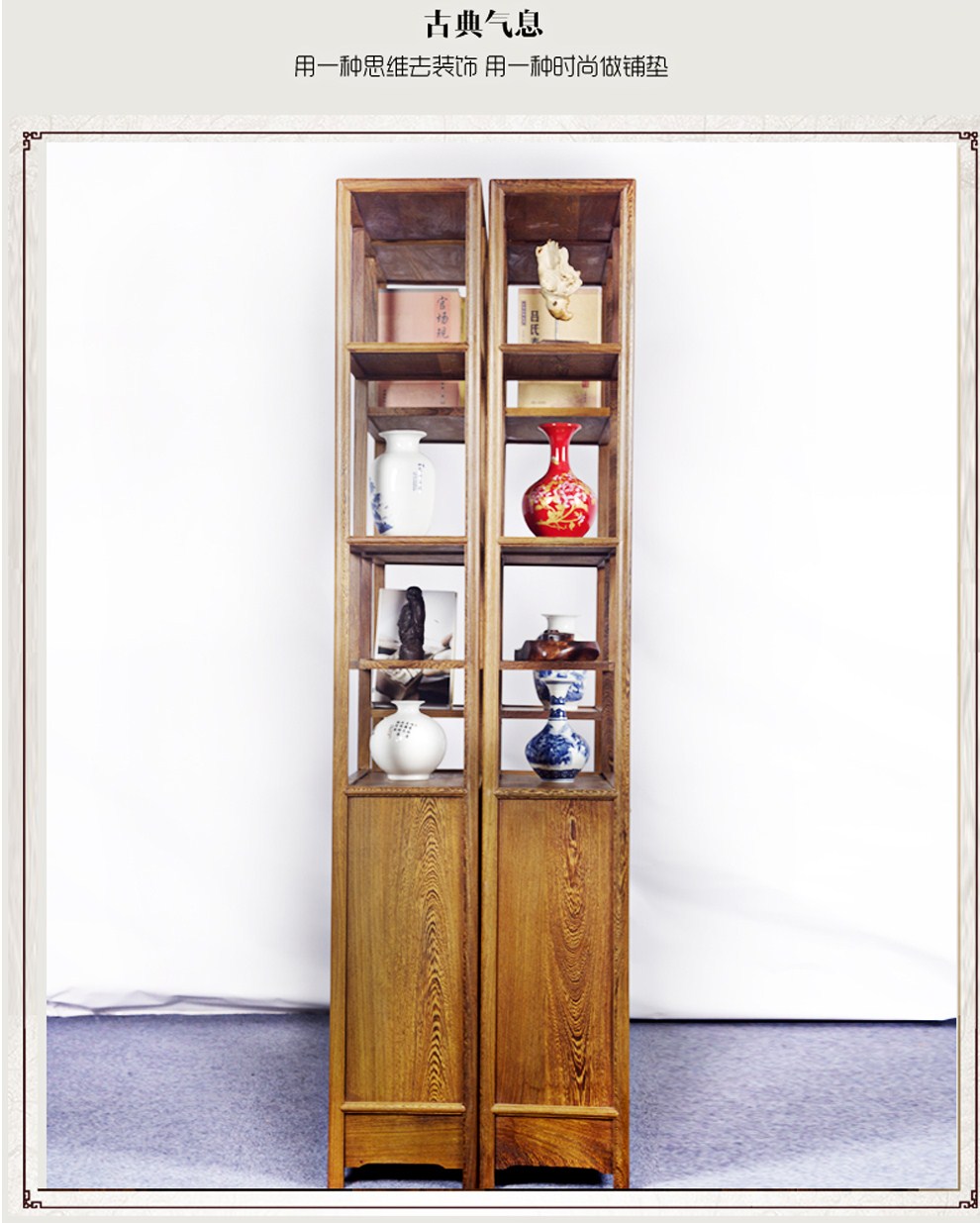 商品名称:明陈记古典家具 全实木书架落地古董展示架仿古摆件置物架博古架