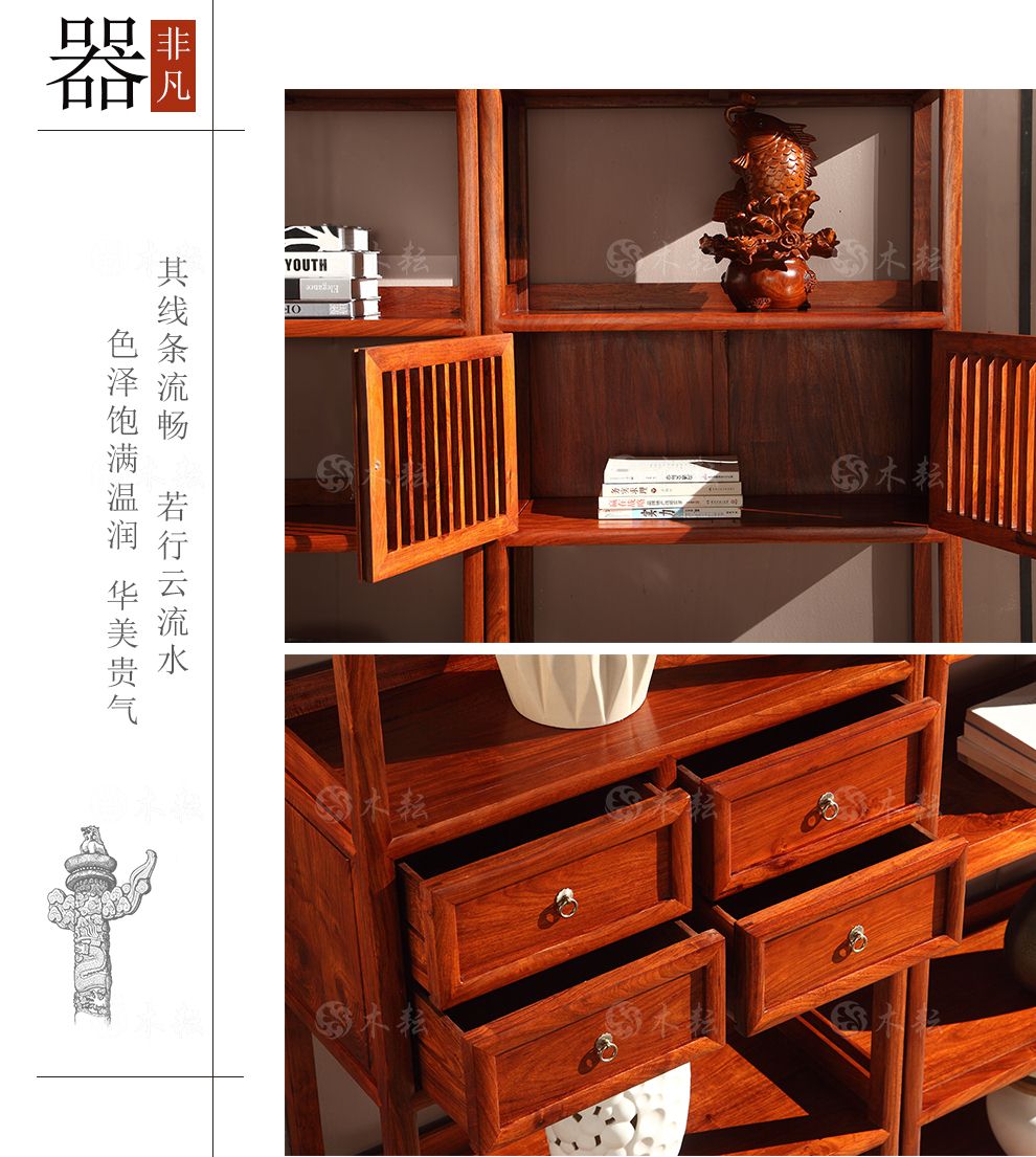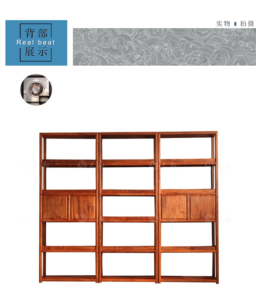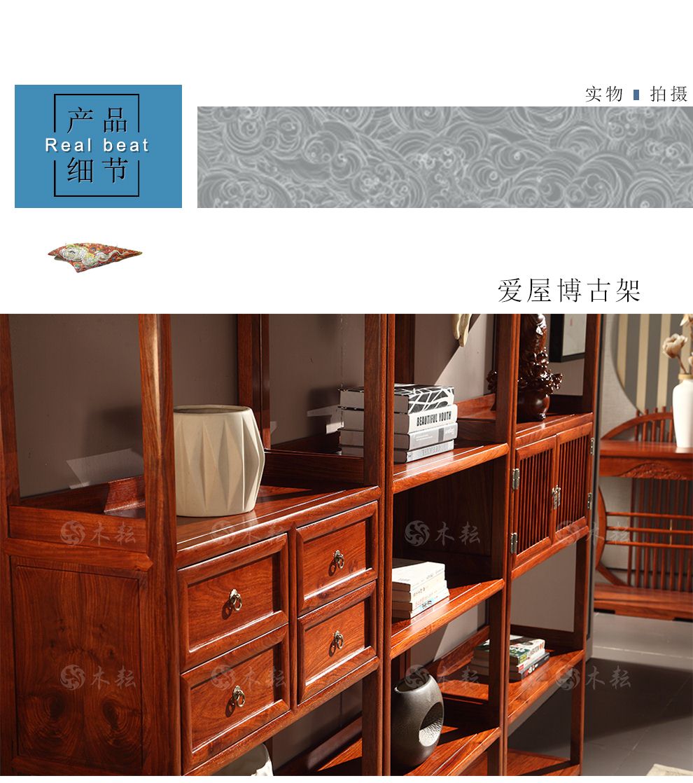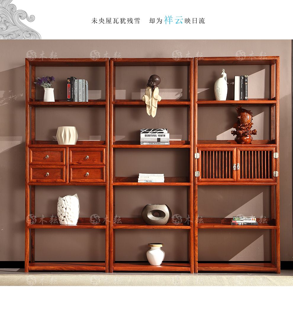 商品名称:木耘 红木家具非洲花梨(学名:刺猬紫檀)三组合博古架实木书柜