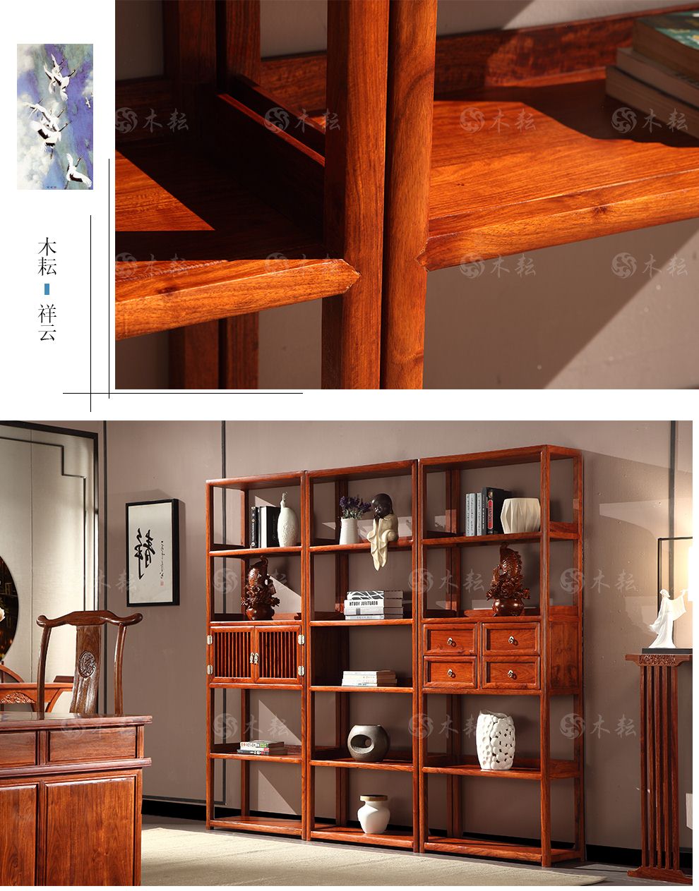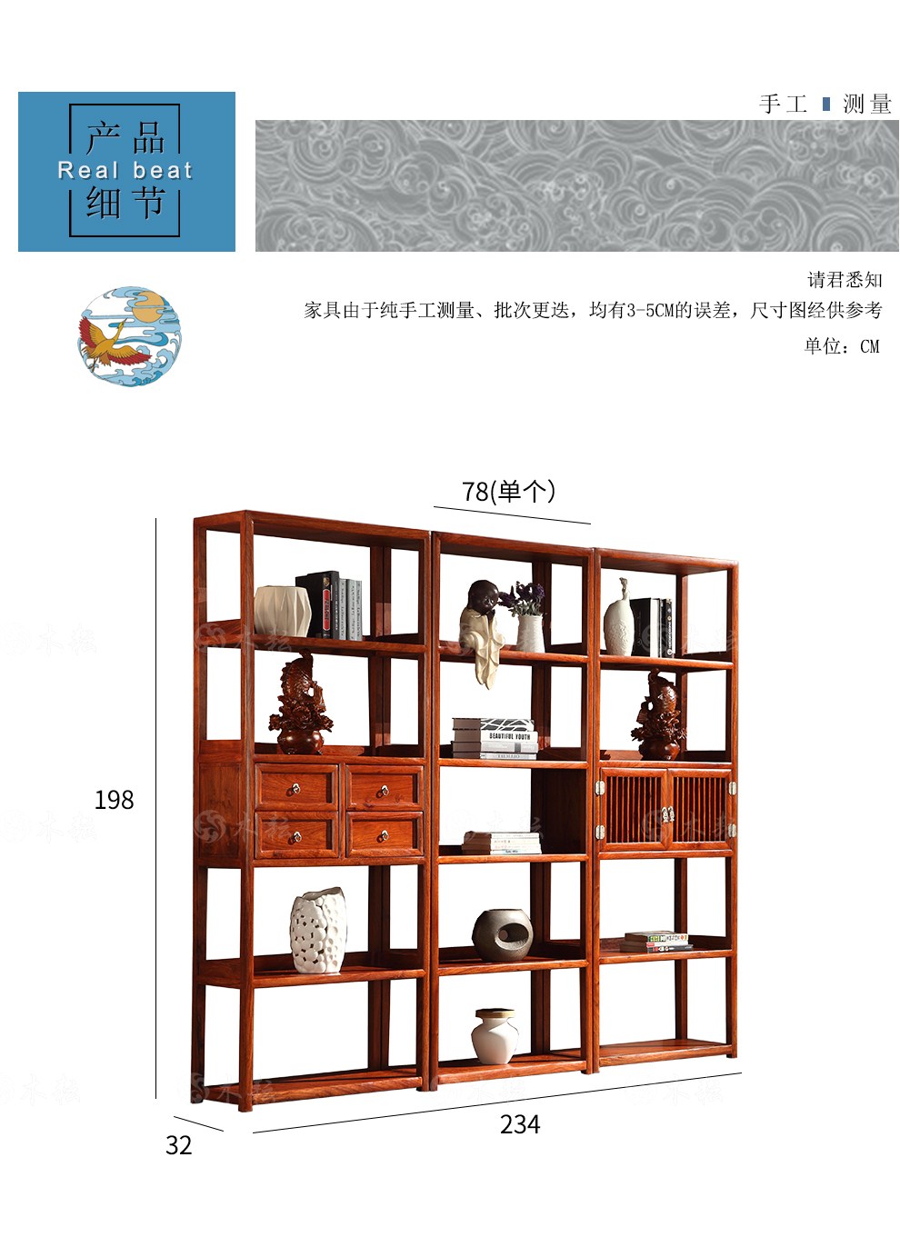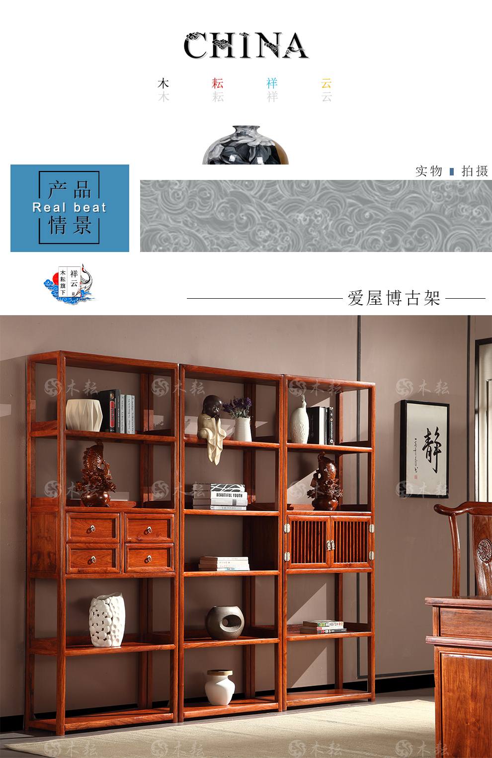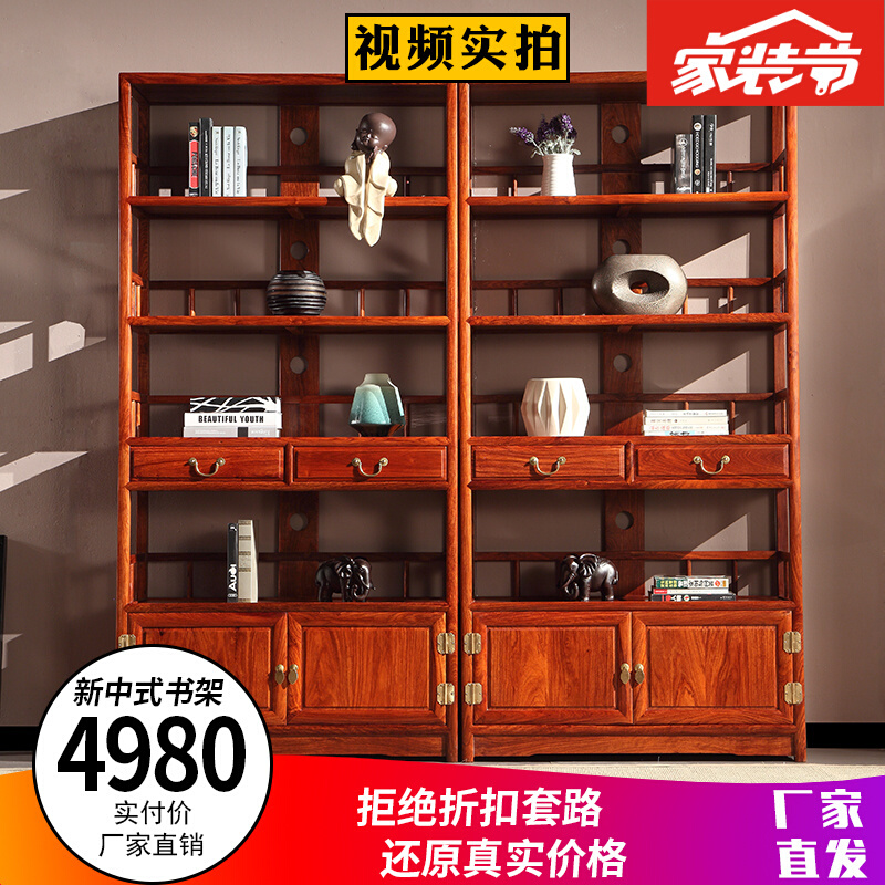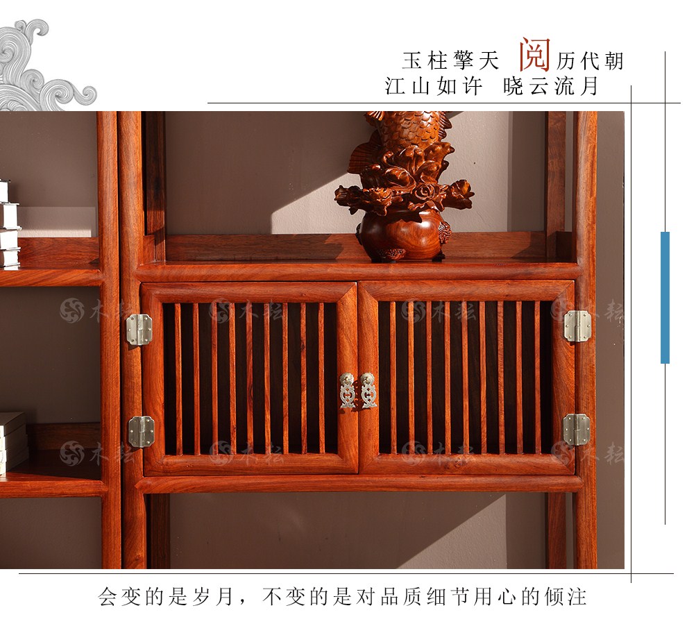 商品名称:木耘 红木家具非洲花梨(学名:刺猬紫檀)三组合博古架实木书柜