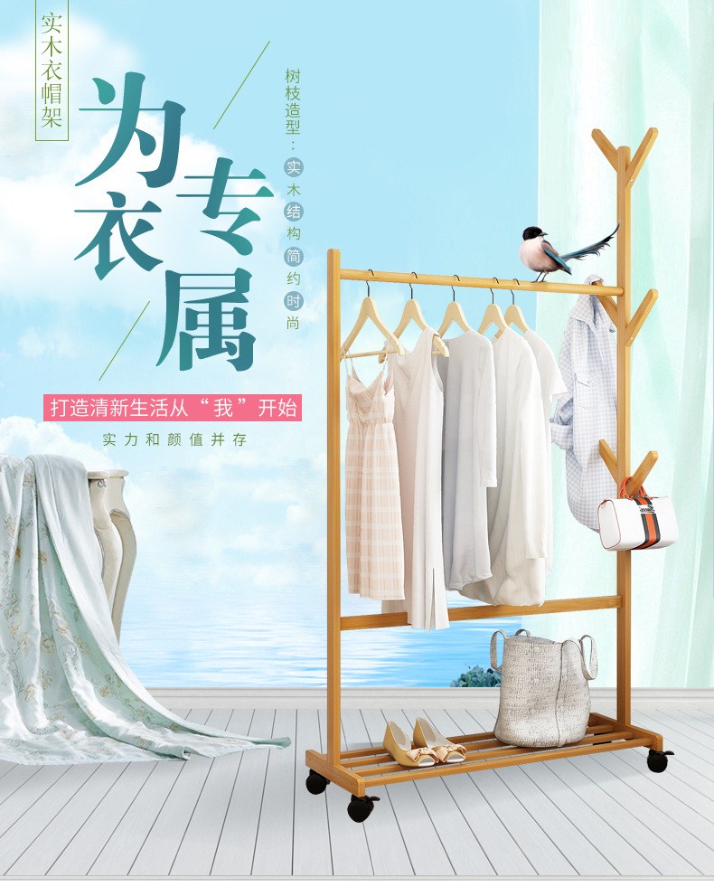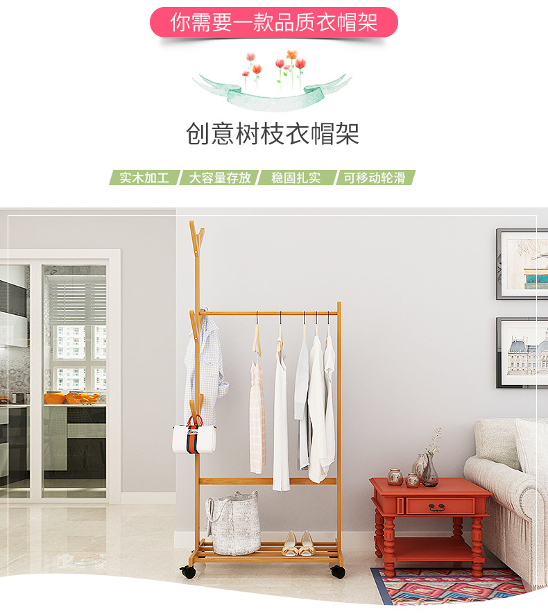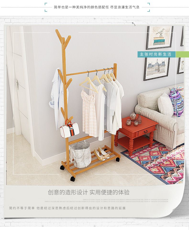 简易衣帽架 现代简约创意客厅卧室立式可移动衣架落地实