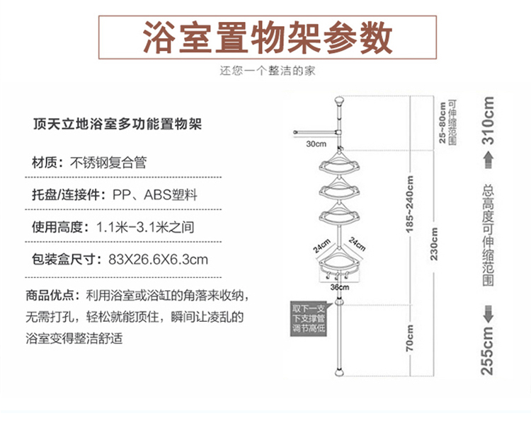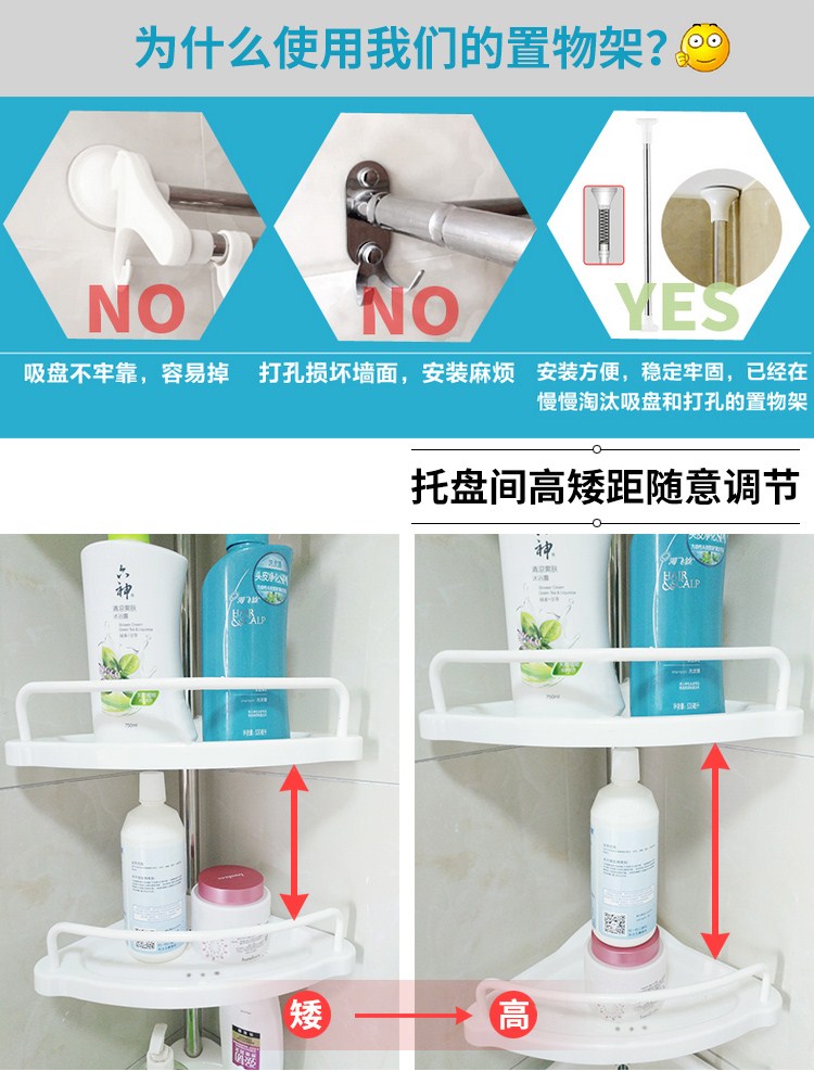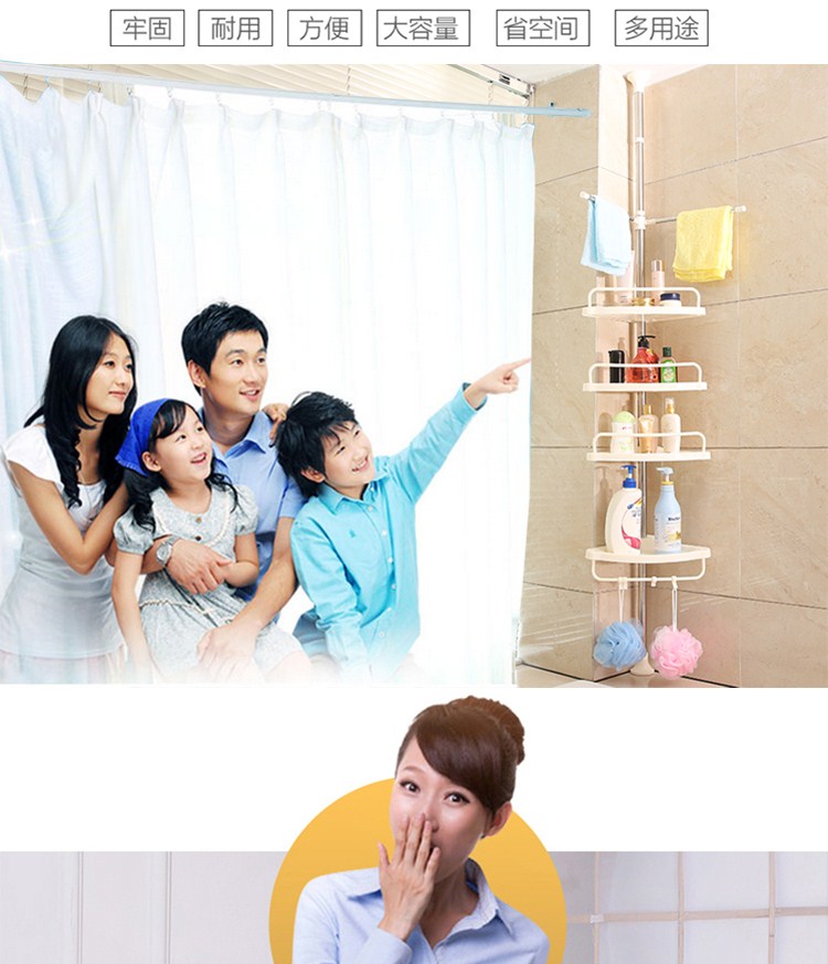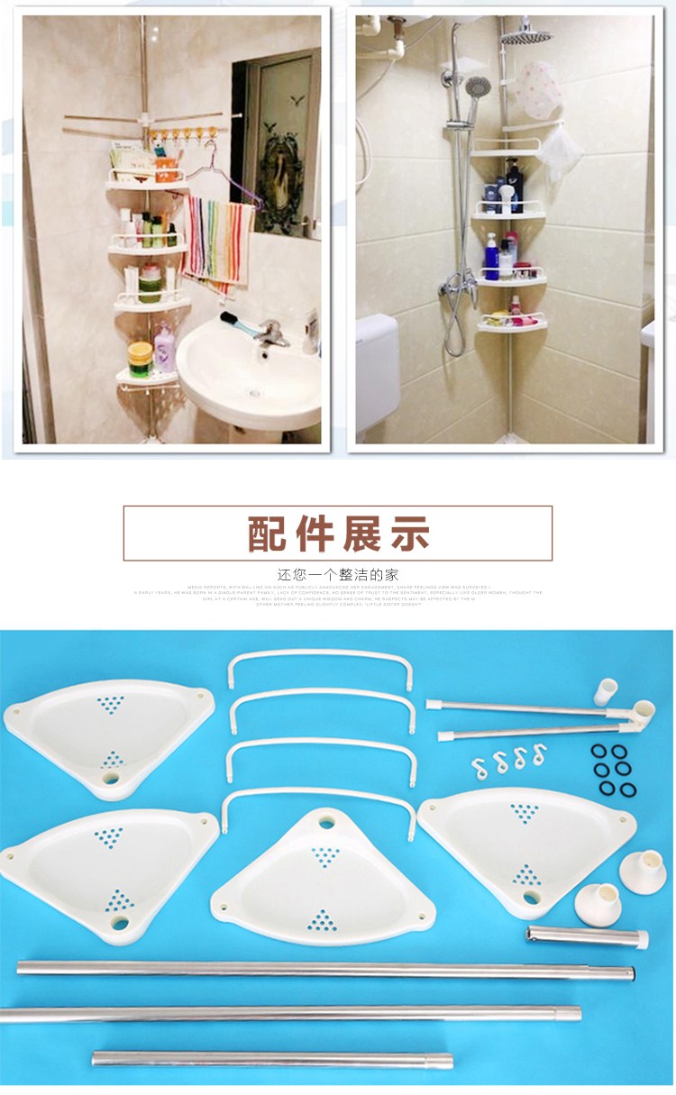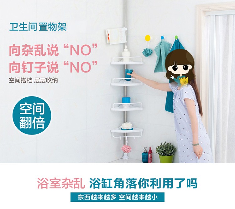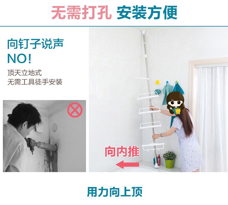 商品名称:免打孔浴室置物架卫生间收纳置物架洗手间厕所免打孔不锈钢杆储