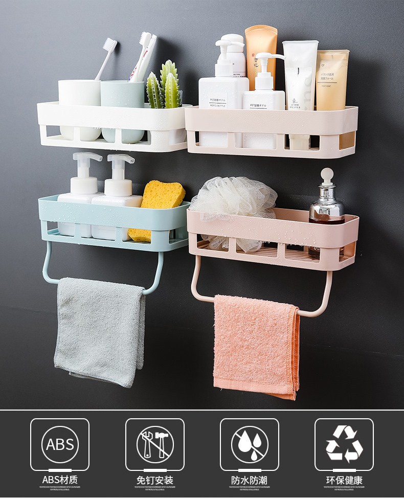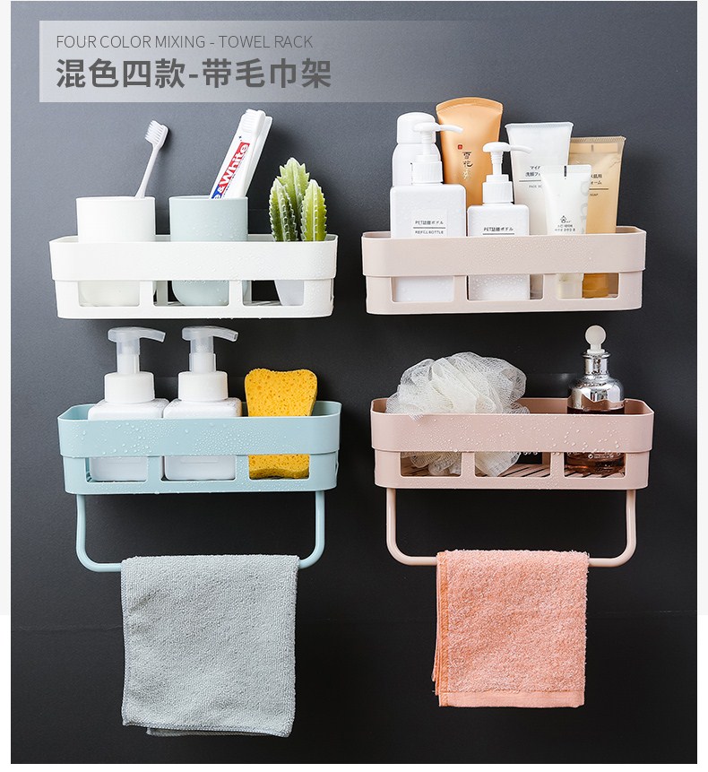 商品名称:卫生间置物架免打孔浴室置物架毛巾架厕所塑料收纳架子墙角多功能