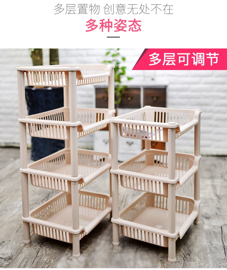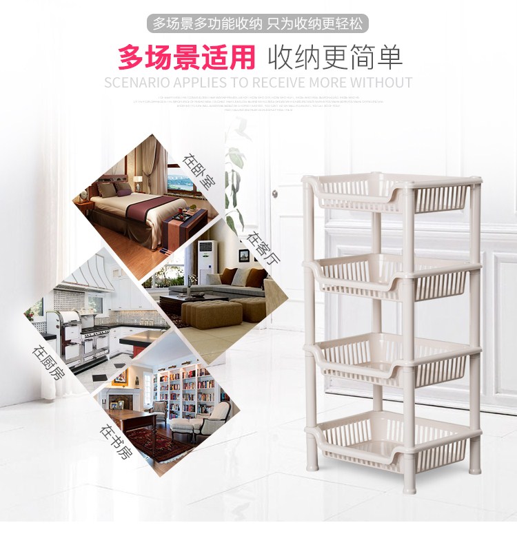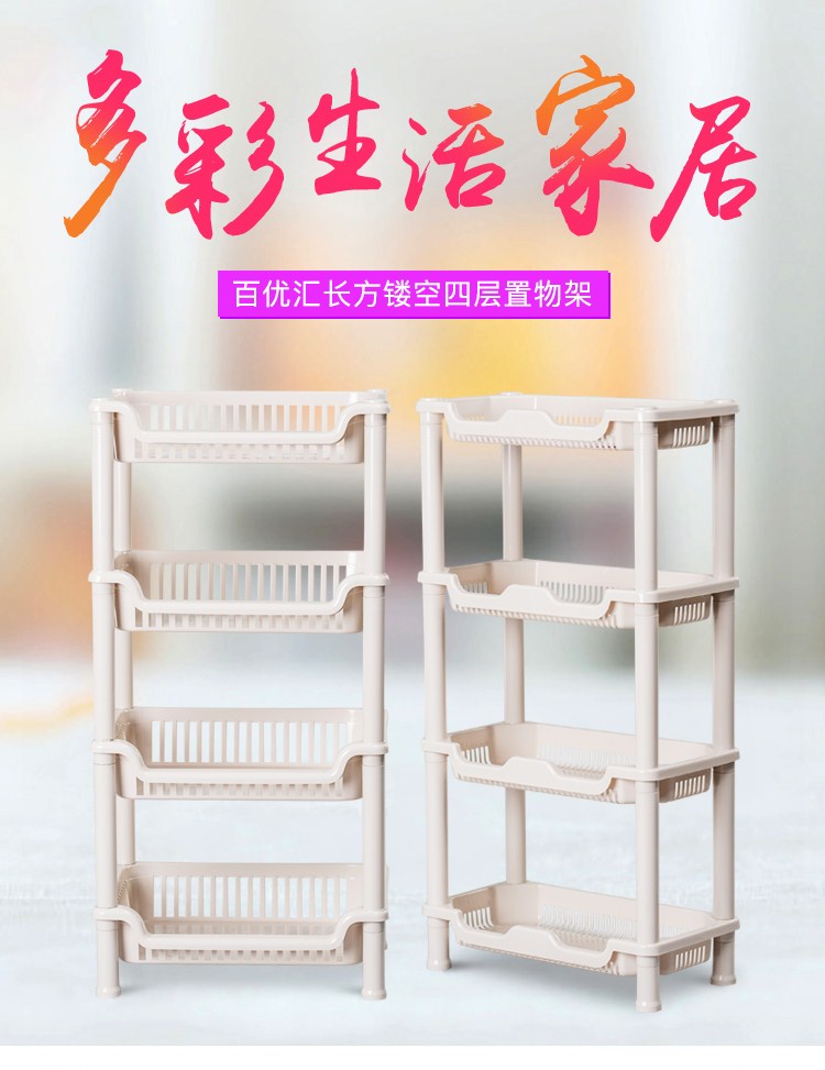 百优汇卫生间浴室置物架中号长方型卧室客厅厨房收纳架(四层)B