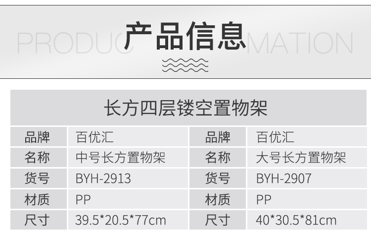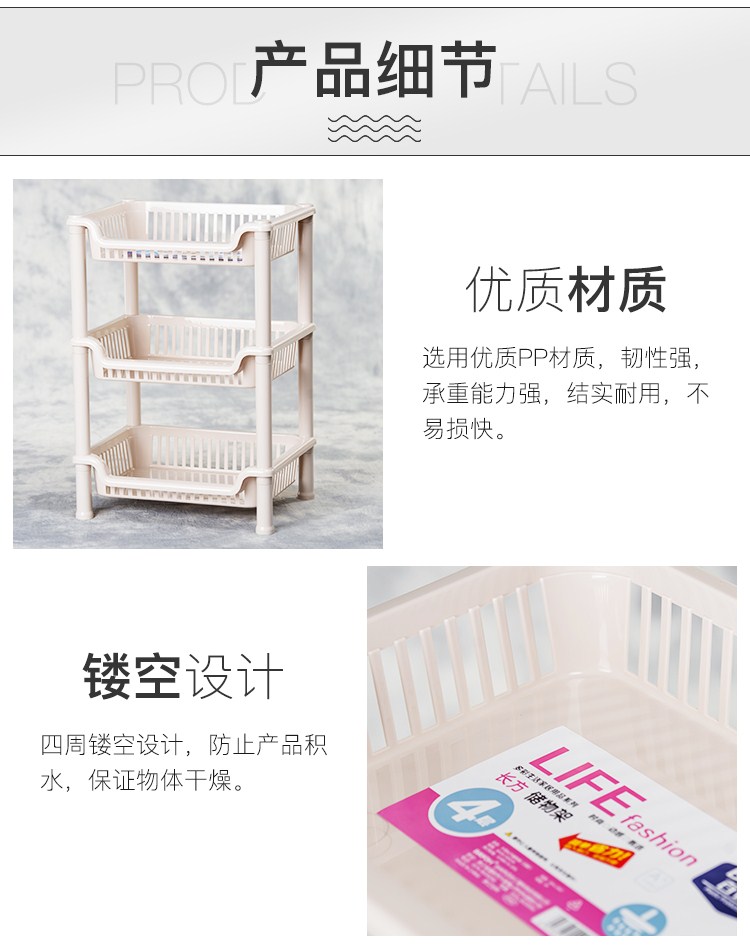 商品名称:百优汇卫生间浴室置物架中号长方型卧室客厅厨房收纳架(四层)B