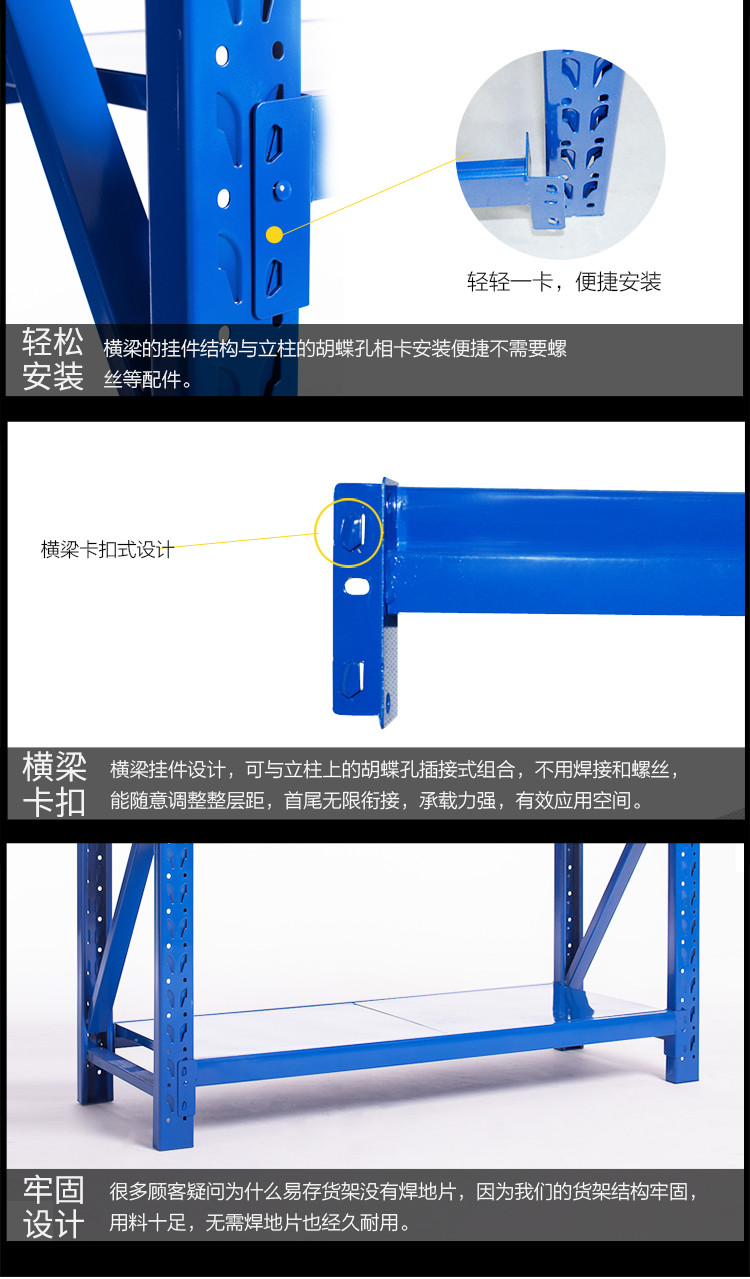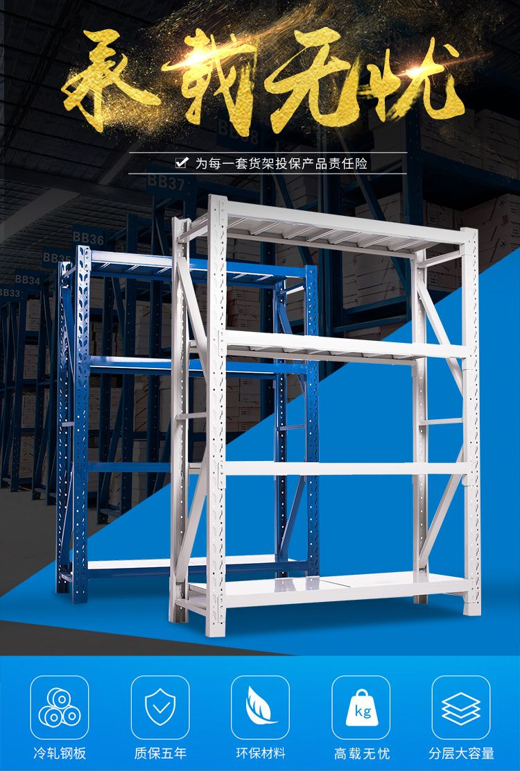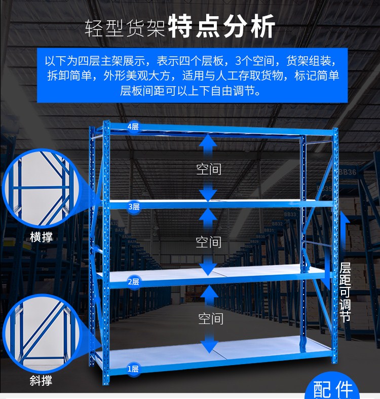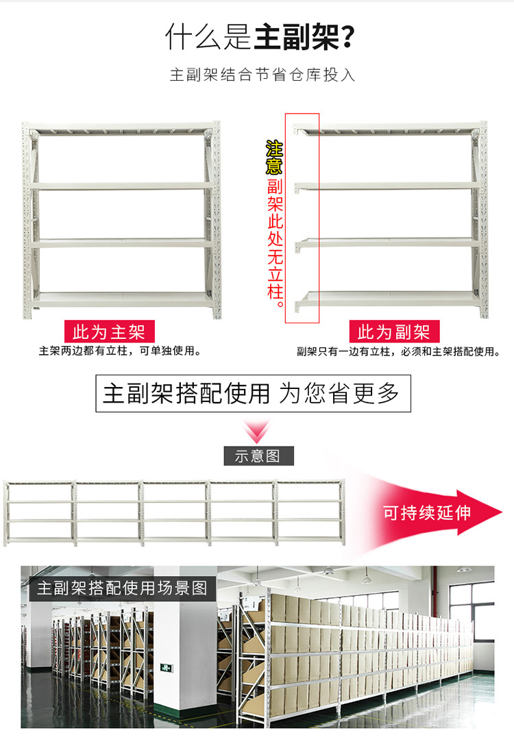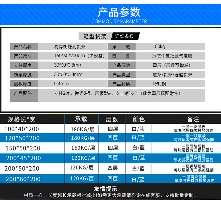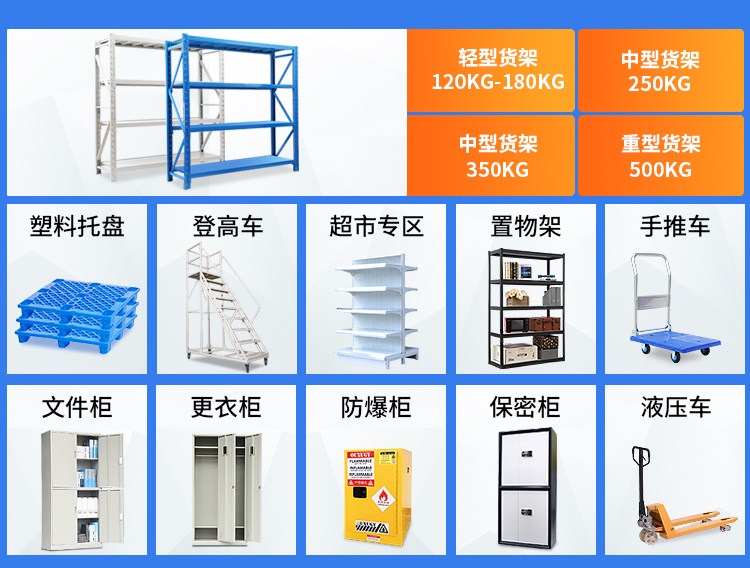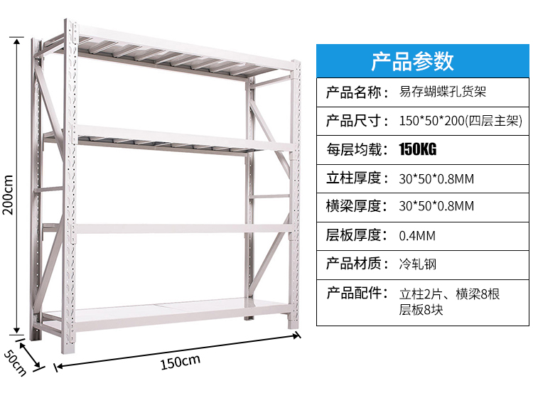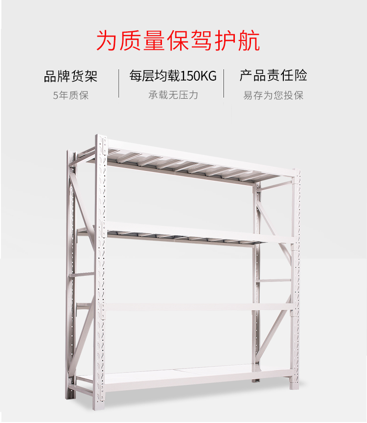 商品名称:易存轻型货架仓储家用层架收纳架子置物架储物架白色150*50*200四