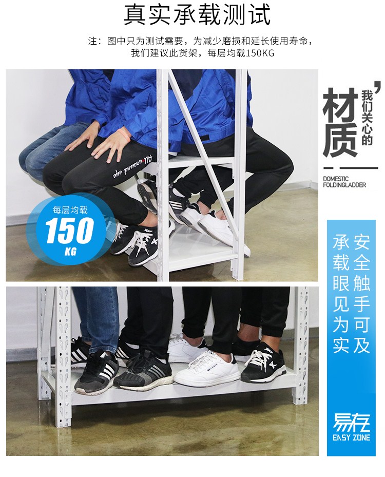 易存轻型货架仓储家用层架收纳架子置物架储物架白色150*50*200四